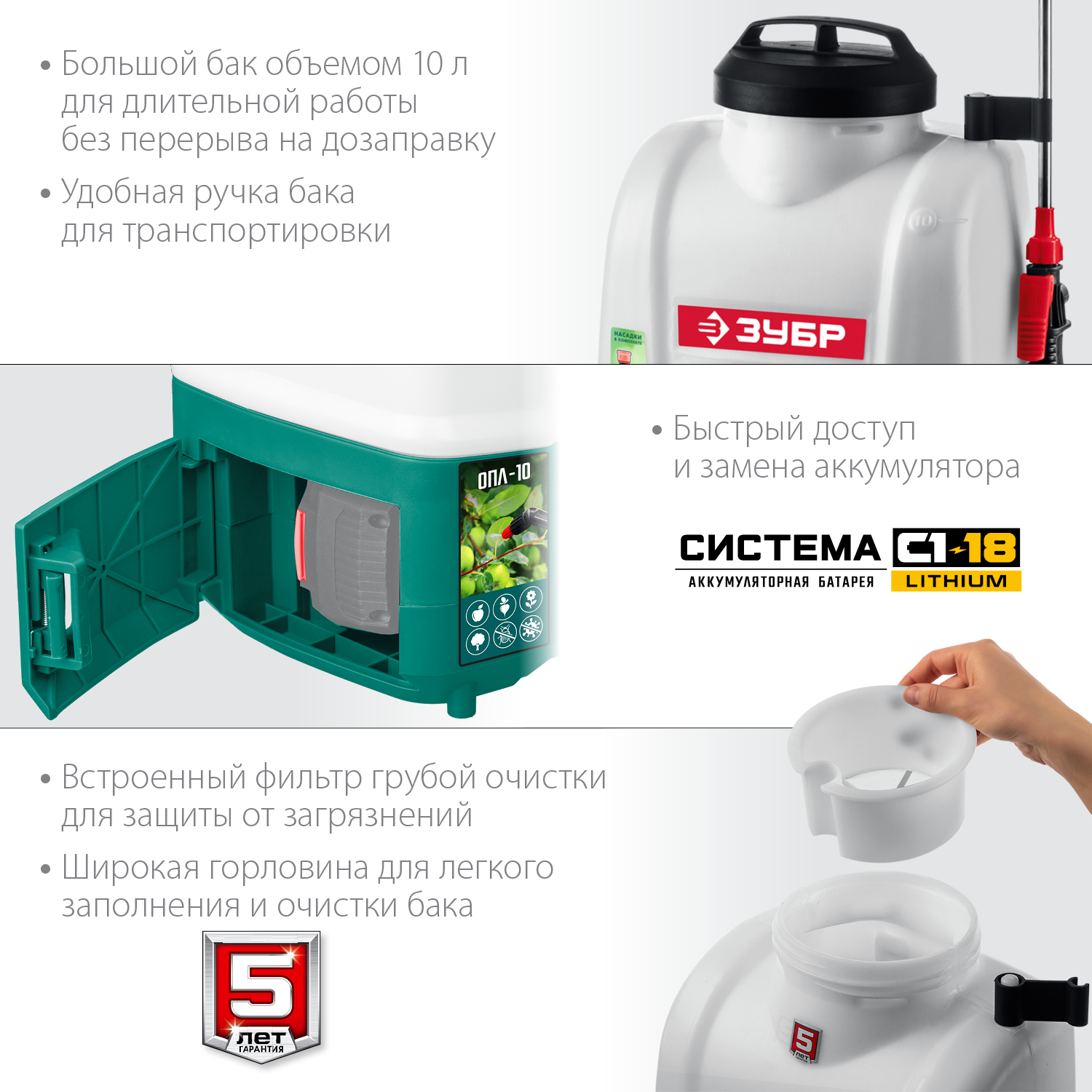 10 л бак, без АКБ, опрыскиватель аккумуляторный, Li-Ion 18В ЗУБР в Орске