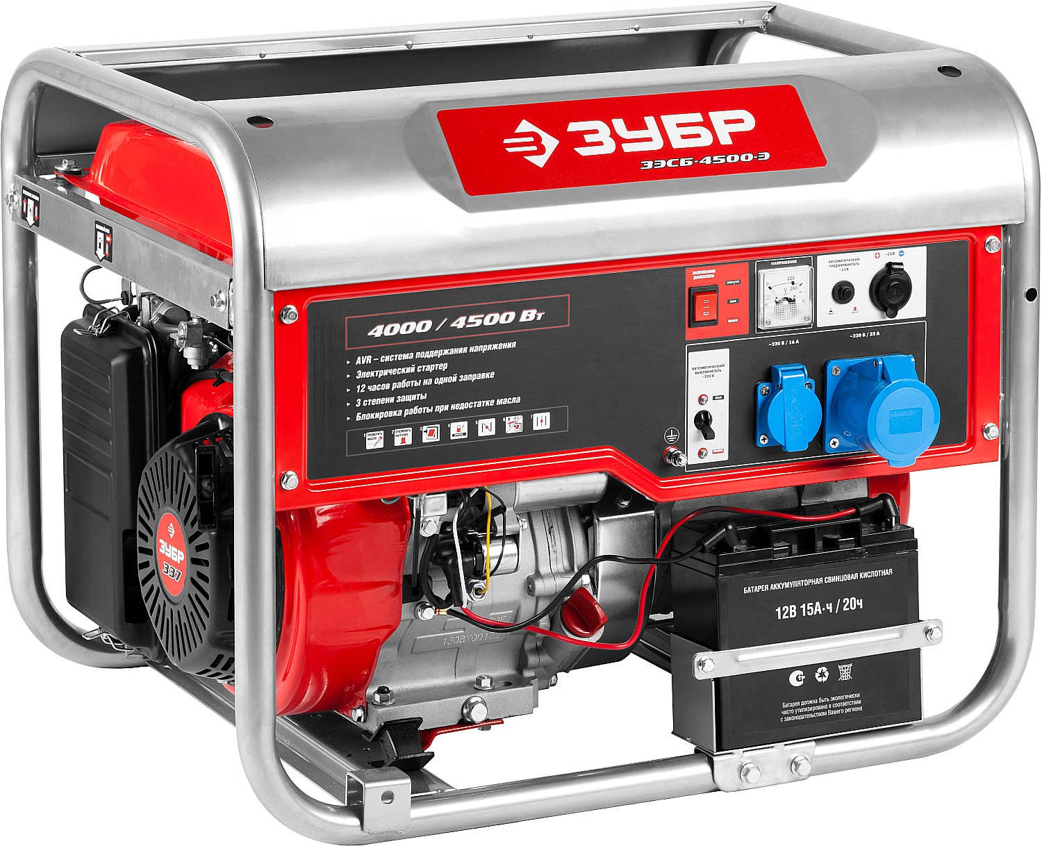 Бензиновый генератор с электростартером, 4500 Вт, ЗУБР в Орске
