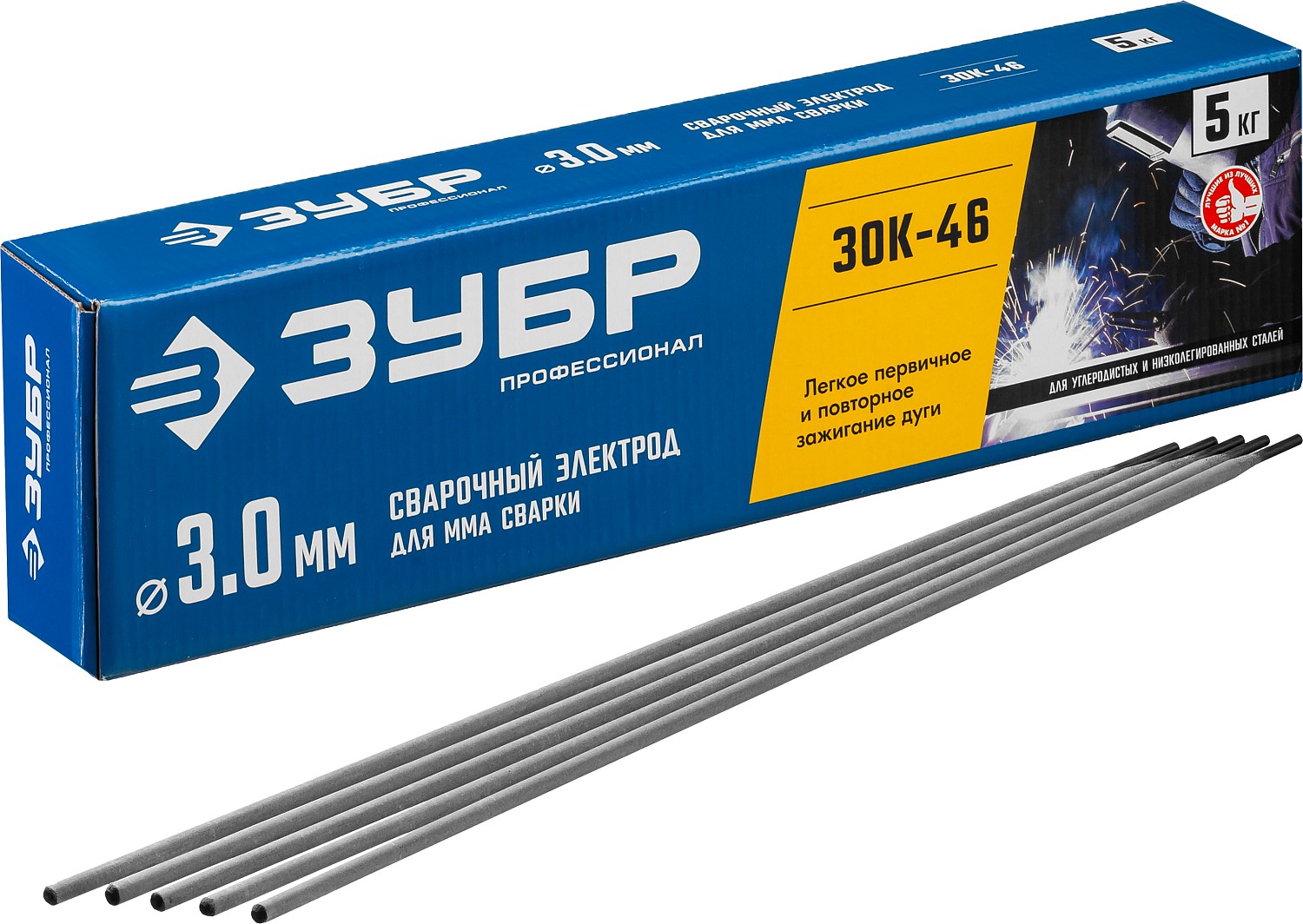 Электрод сварочный ЗОК-46 рутил-целлюлозный, d 3.0 х 350 мм, 5 кг в коробке, Профессионал. ЗУБР в Орске