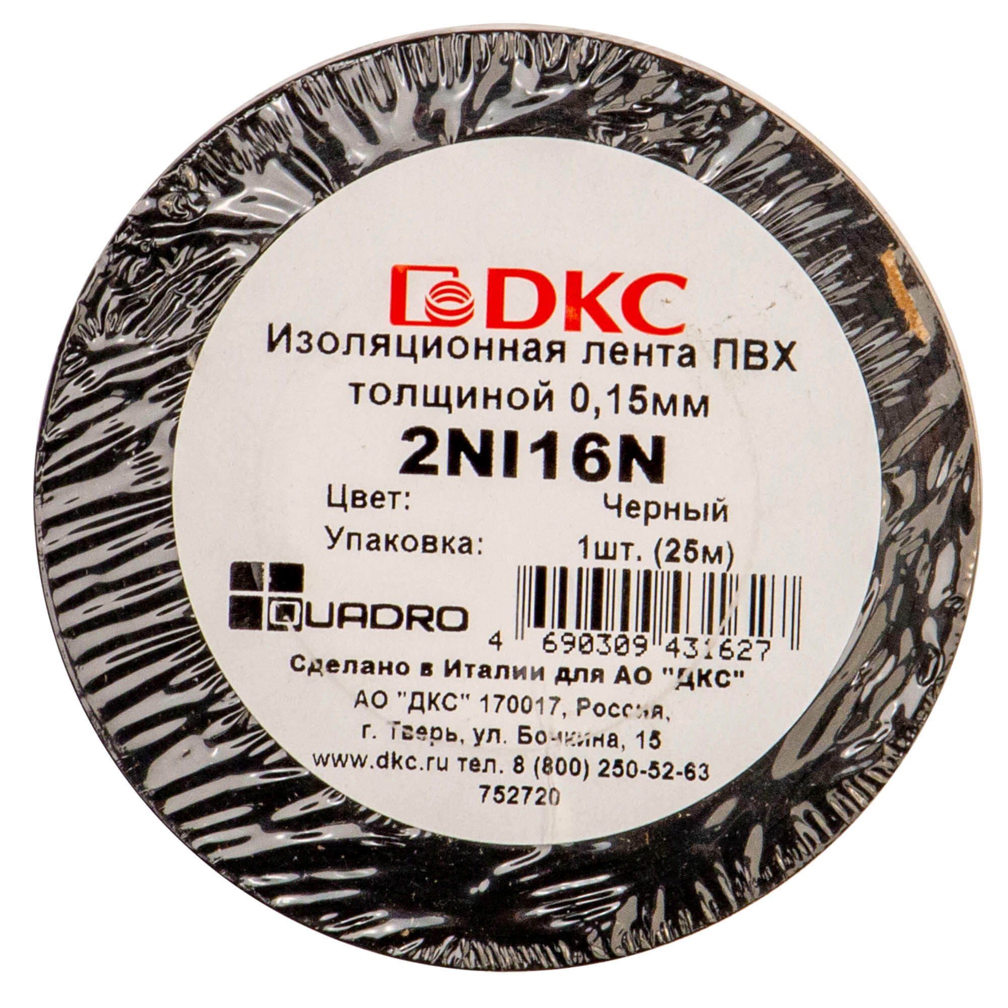 Лента изоляционная ПВХ 19x0,15 25м в рулоне Черная DKC в Орске