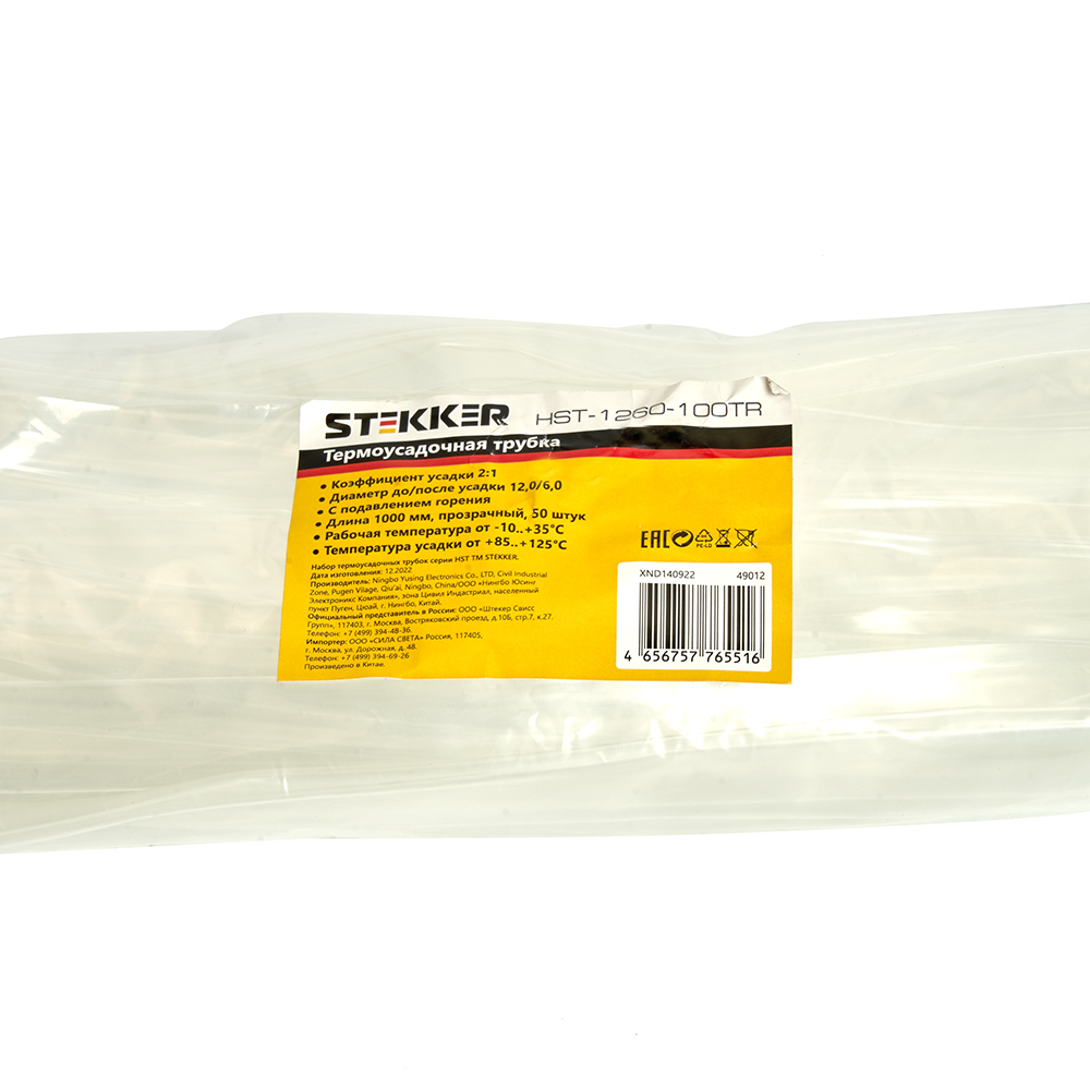 Термоусадочная трубка STEKKER HST-1260-100TR, длина 100 см., коэф. усадки 2:1, прозрачный в Орске