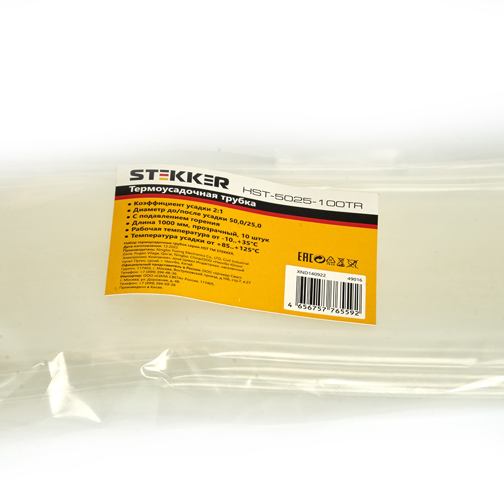 Термоусадочная трубка STEKKER HST-5025-100TR, длина 100 см., коэф. усадки 2:1, прозрачный в Орске