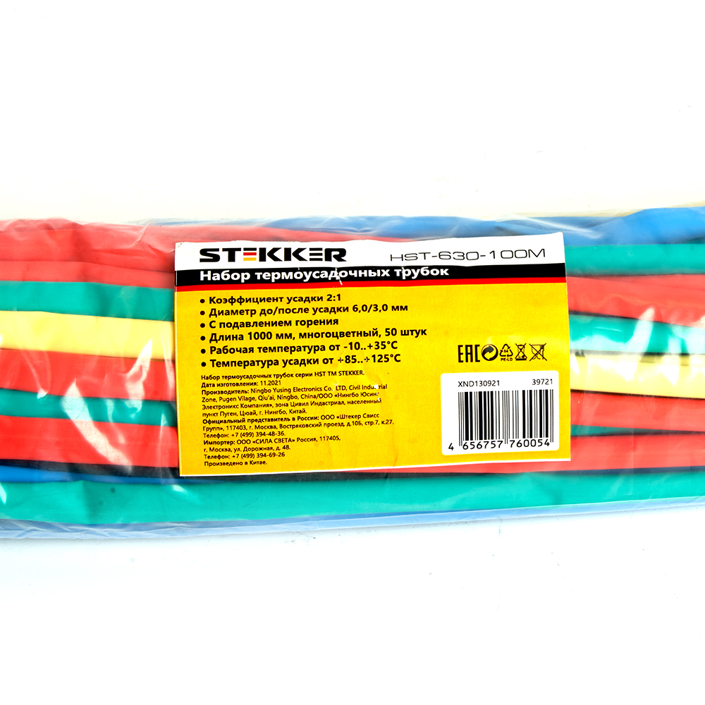 Термоусадочная трубка STEKKER HST-630-100M, длина 100 см., коэф. усадки 2:1, мультиколор в Орске