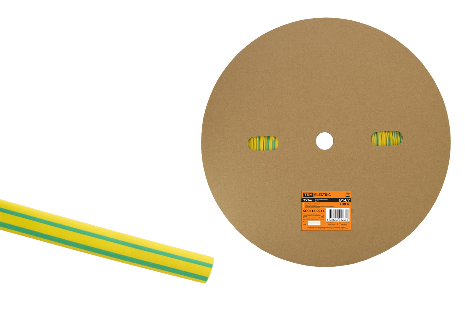 Термоусаживаемая трубка ТУТнг 14/7 желто-зеленая (100 м/ролл) TDM в Орске