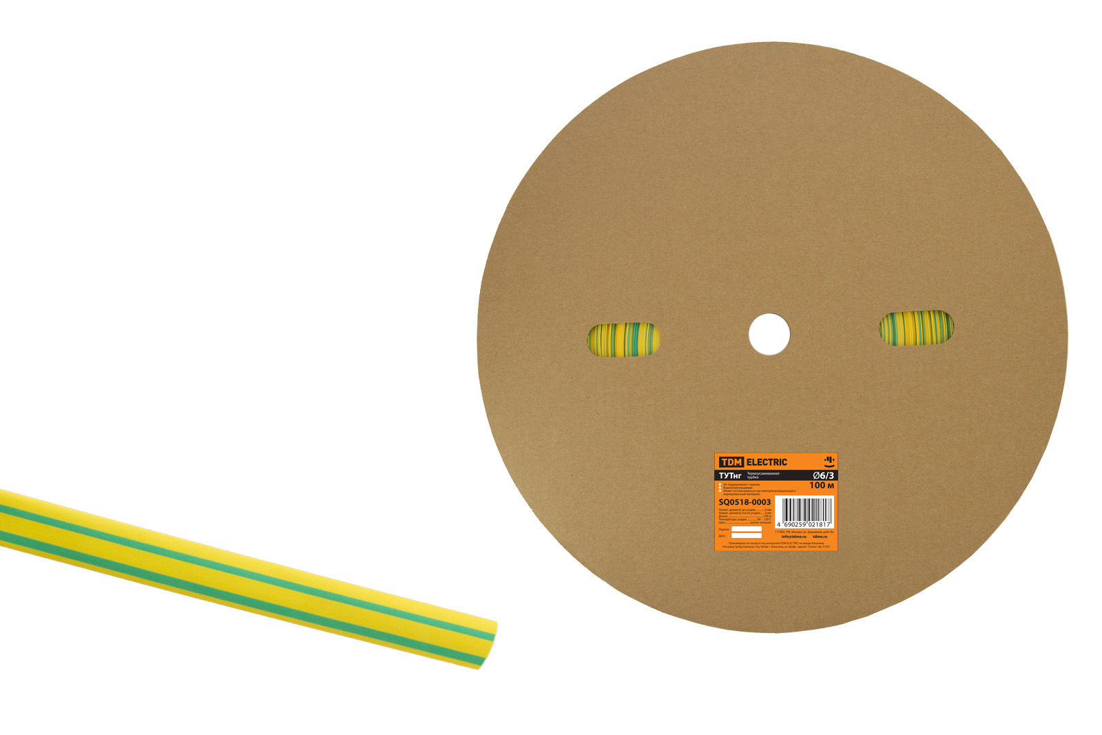 Термоусаживаемая трубка ТУТнг 6/3 желто-зеленая (100 м/ролл) TDM в Орске