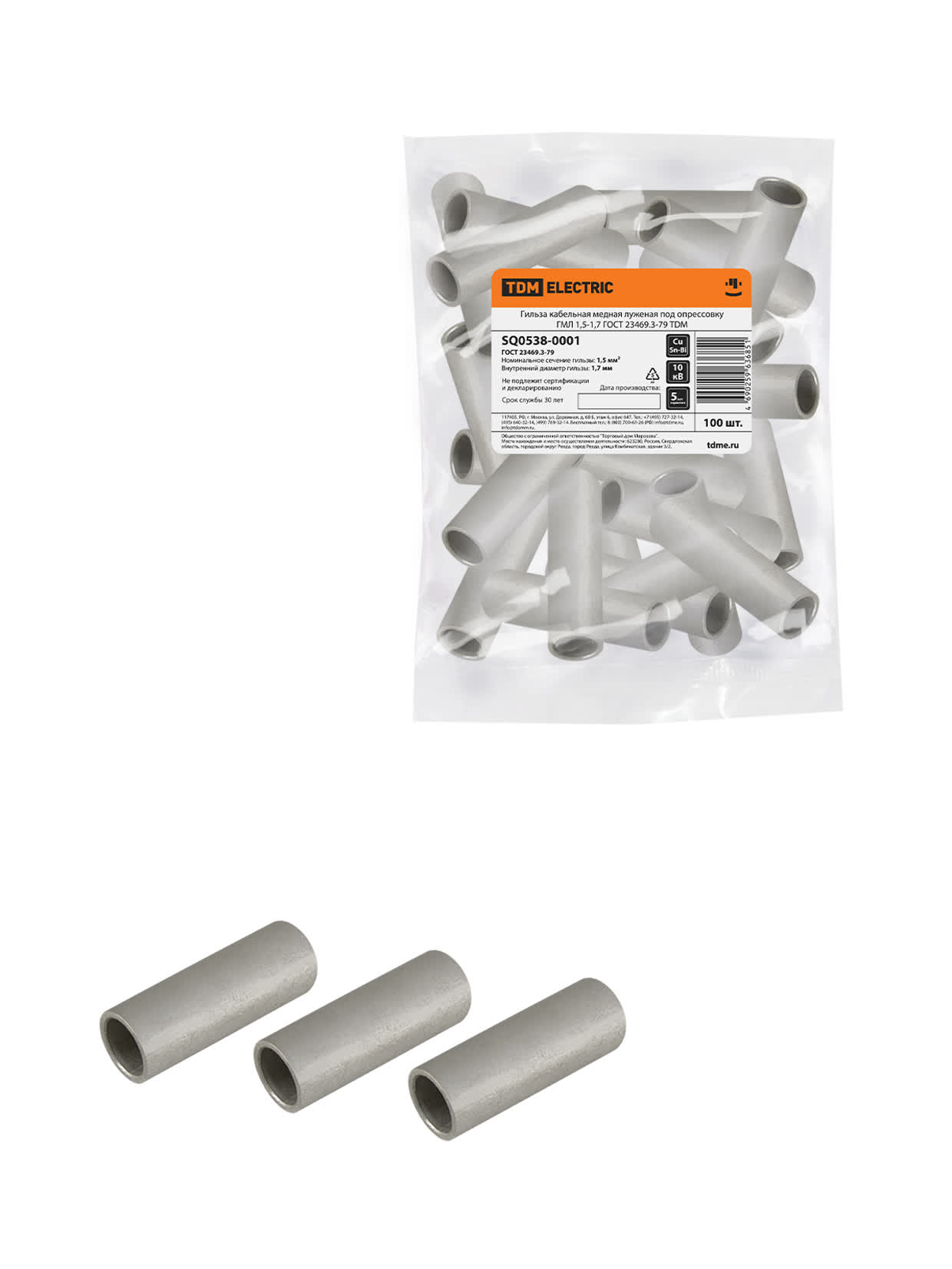 Гильза кабельная медная луженая под опрессовку ГМЛ 1,5-1,7 ГОСТ 23469.3-79 TDM доступен в интернет‑магазине ВольтМаркет в Орске. Покупая у нас, вы получаете дополнительные преимущества: