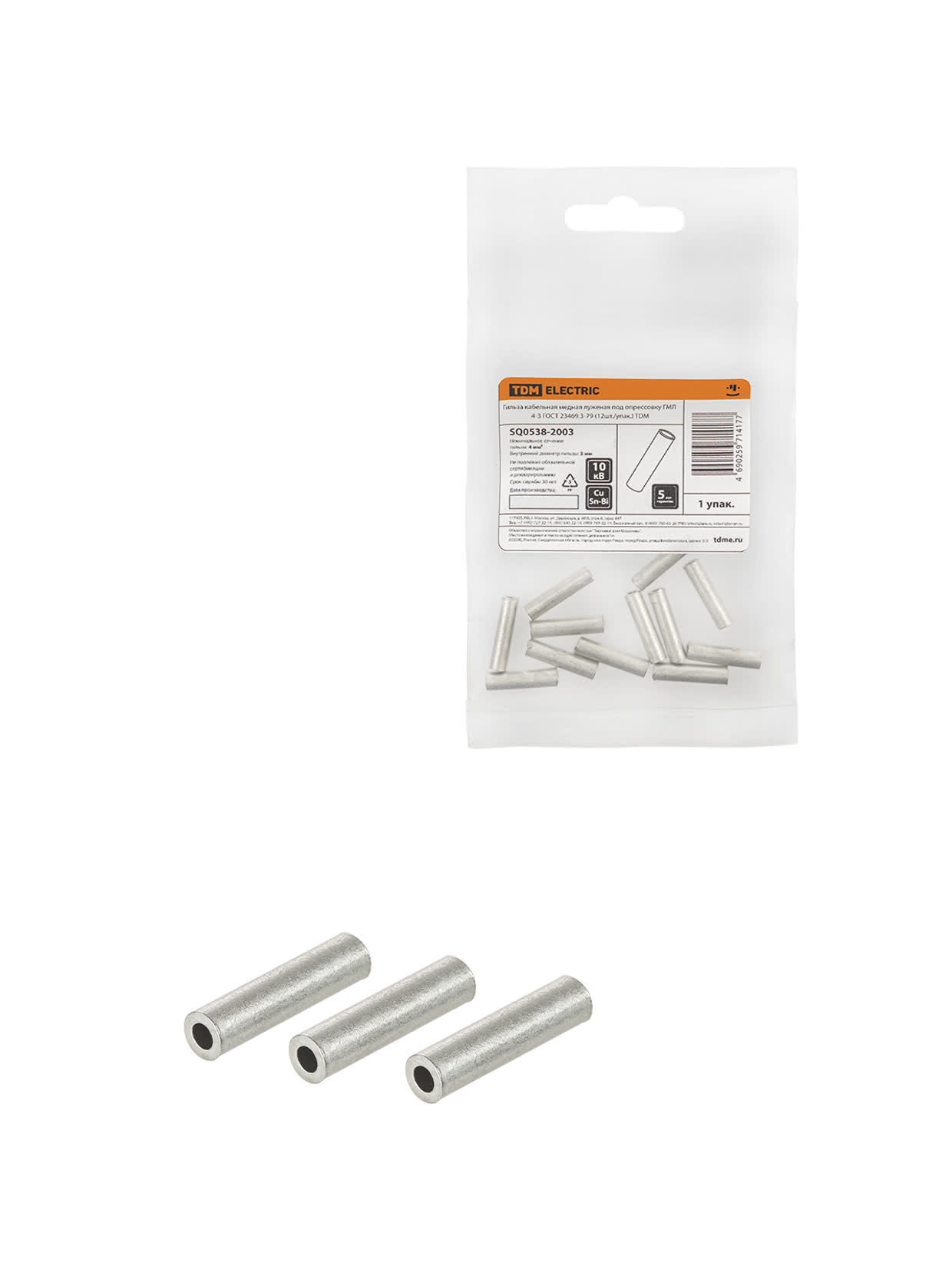 Гильза кабельная медная луженая под опрессовку ГМЛ 4-3 ГОСТ 23469.3-79 (12шт./упак.) TDM доступен в интернет‑магазине ВольтМаркет в Орске. Покупая у нас, вы получаете дополнительные преимущества: