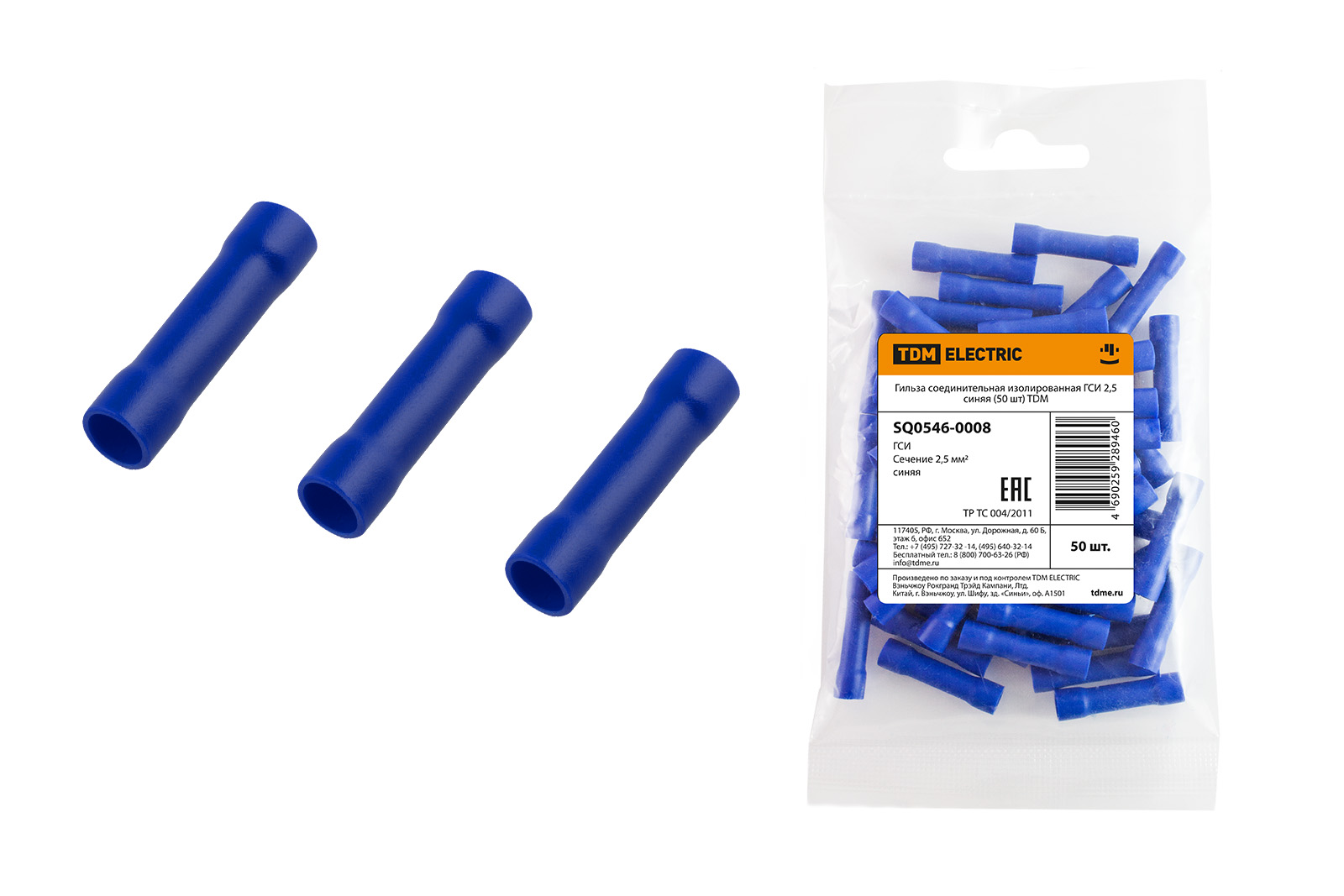 Гильза соединительная изолированная ГСИ 2,5 синяя (50 шт) TDM в Орске