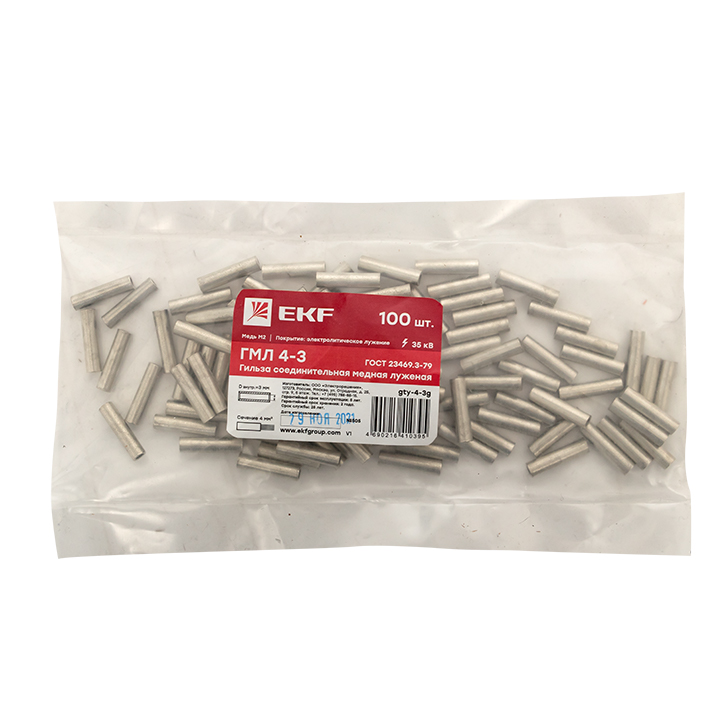 Гильза соединительная медная луженая ГМЛ 4-3 ГОСТ PROxima EKF доступен в интернет‑магазине ВольтМаркет в Орске. Покупая у нас, вы получаете дополнительные преимущества: