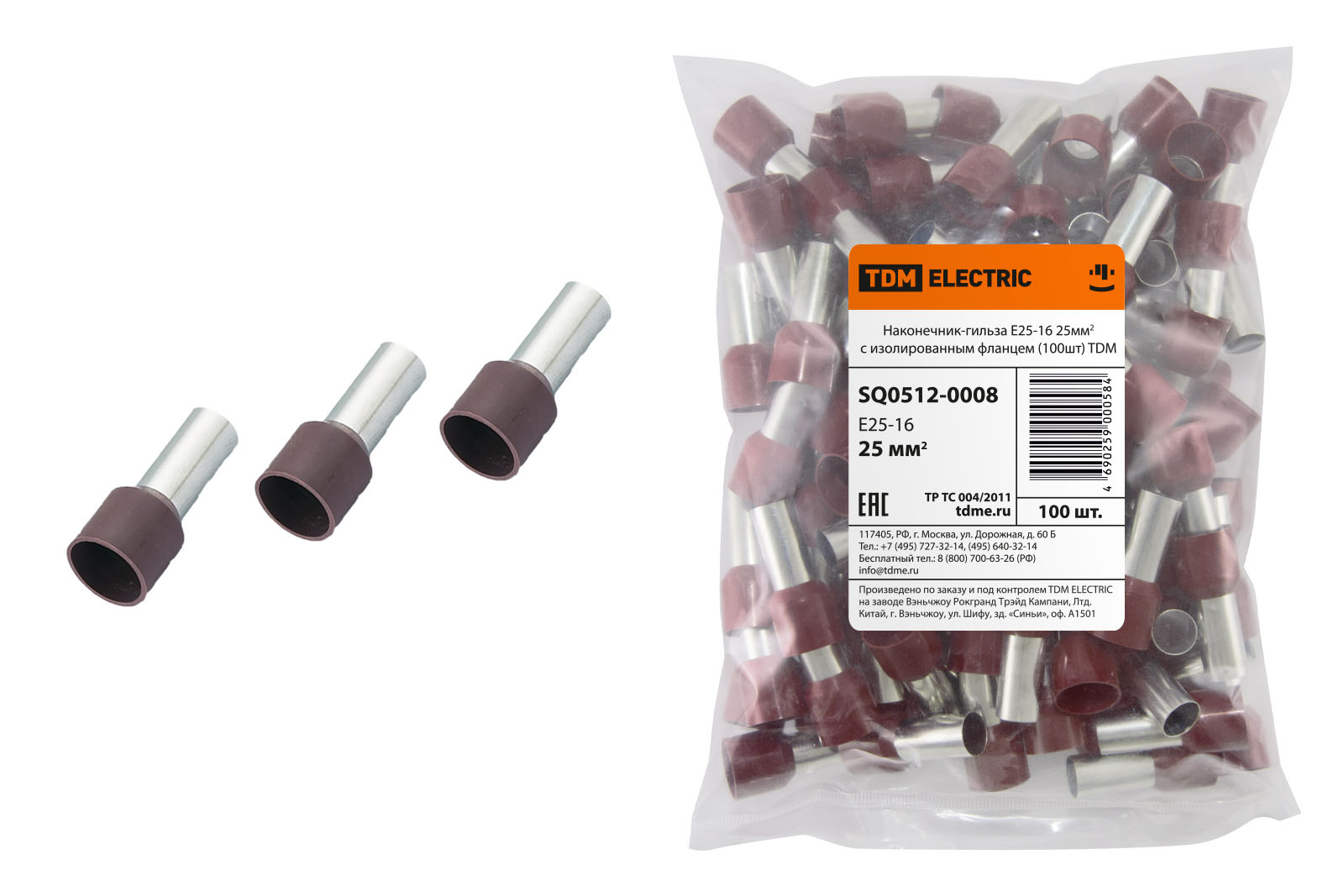 Наконечник-гильза Е25-16 25мм2 с изолированным фланцем (100шт) TDM в Орске