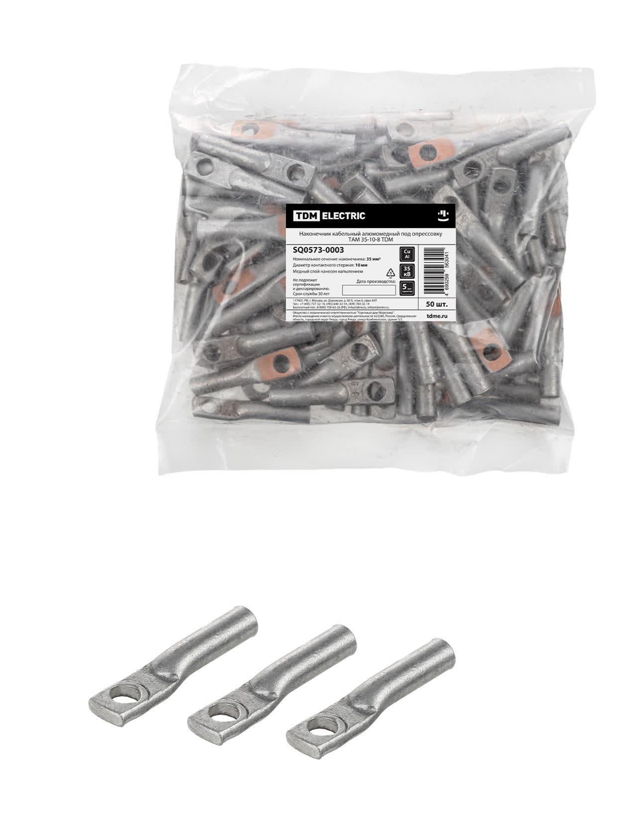 Наконечник кабельный алюмомедный под опрессовку ТАМ 35-10-8 TDM в Орске