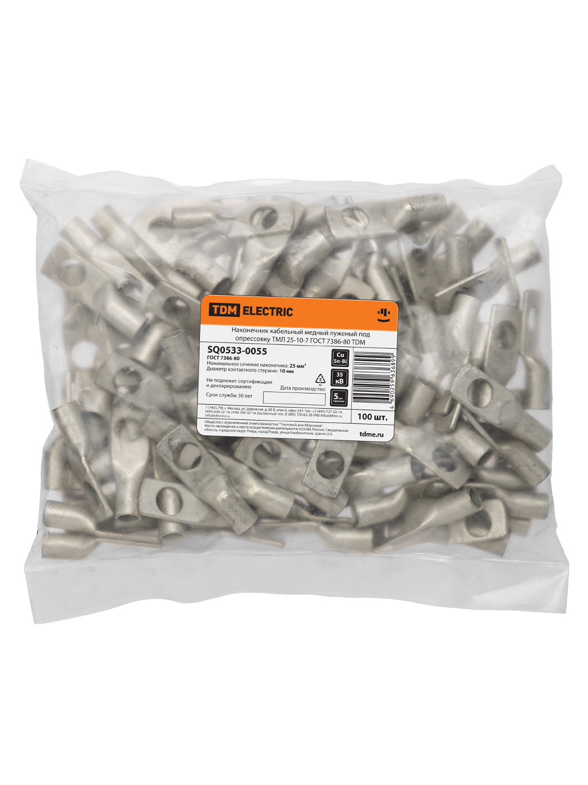 Наконечник кабельный медный луженый под опрессовку ТМЛ 25-10-7 ГОСТ 7386-80 TDM в Орске