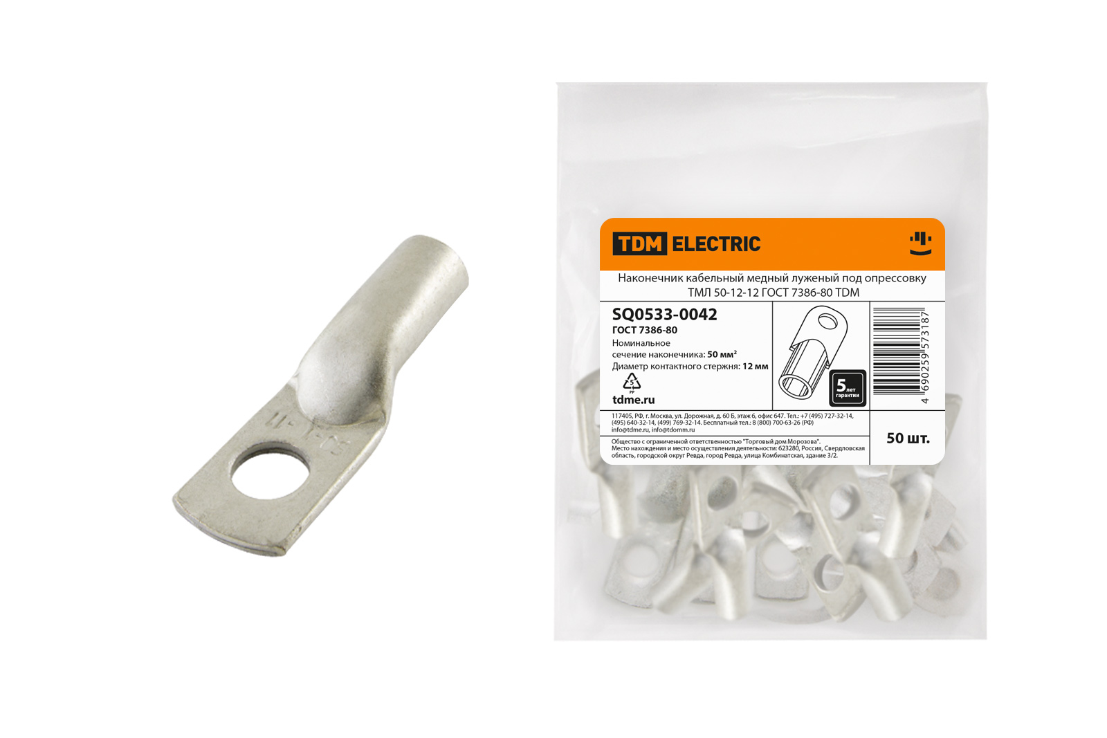 Наконечник кабельный медный луженый под опрессовку ТМЛ 50-12-12 ГОСТ 7386-80 TDM доступен в интернет‑магазине ВольтМаркет в Орске. Покупая у нас, вы получаете дополнительные преимущества:
