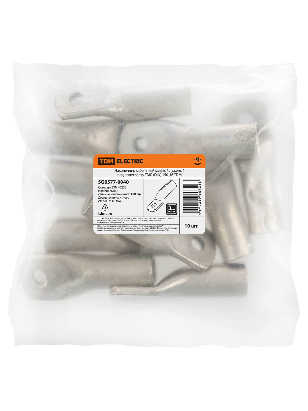 Наконечник кабельный медный луженый под опрессовку ТМЛ (DIN) 150-16 TDM в Орске