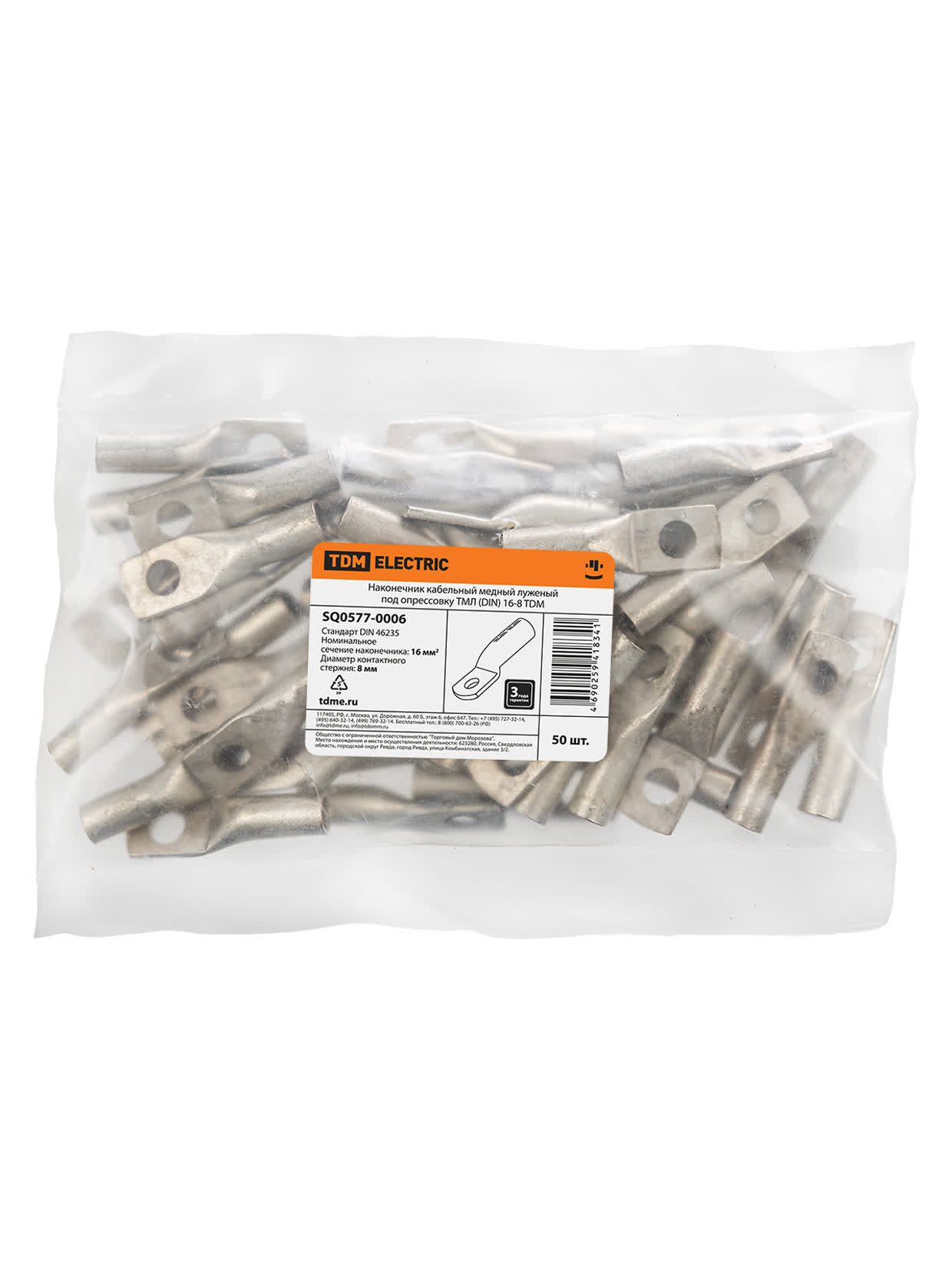 Наконечник кабельный медный луженый под опрессовку ТМЛ (DIN) 16-8 TDM в Орске