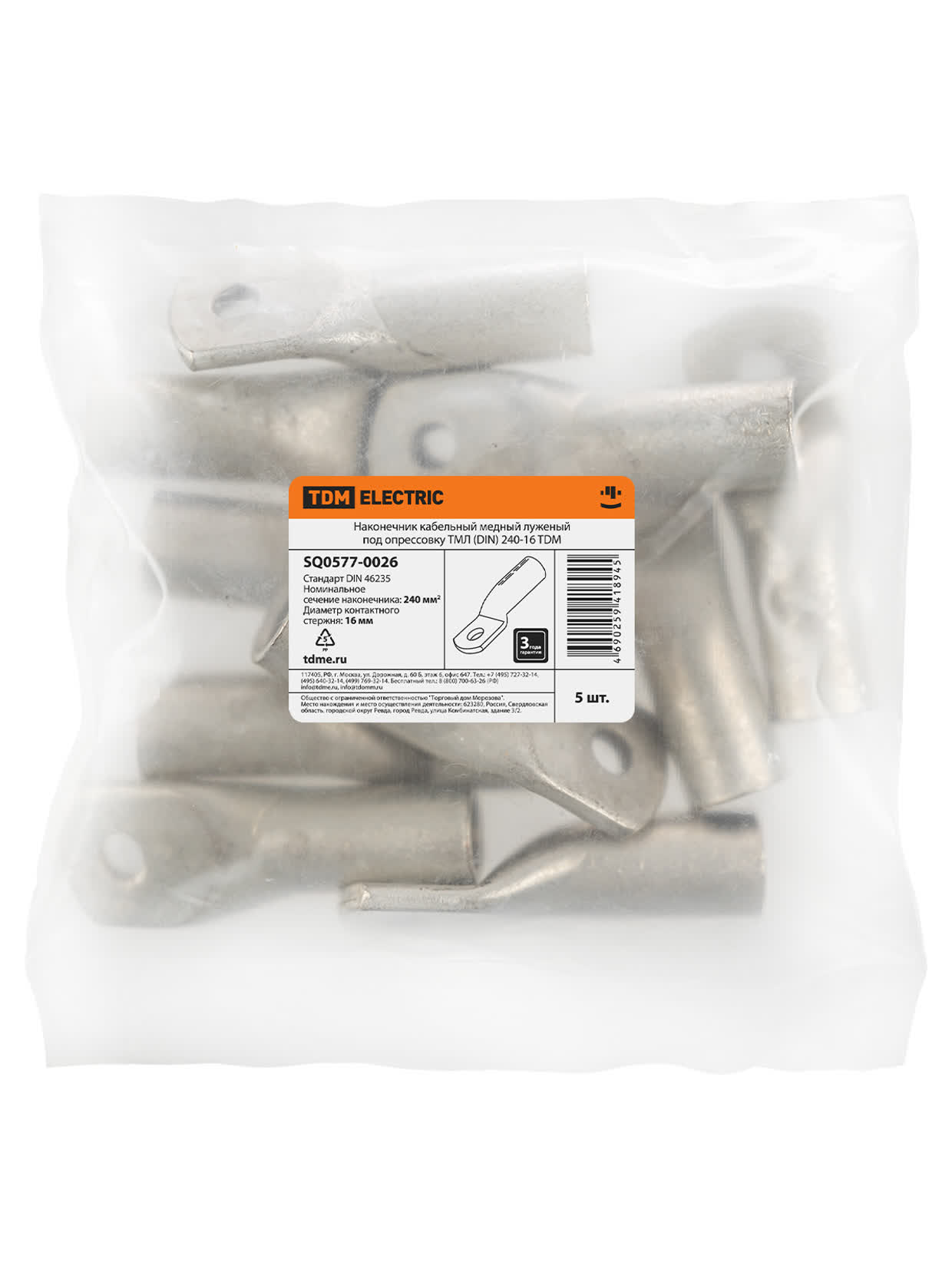 Наконечник кабельный медный луженый под опрессовку ТМЛ (DIN) 240-16 TDM в Орске