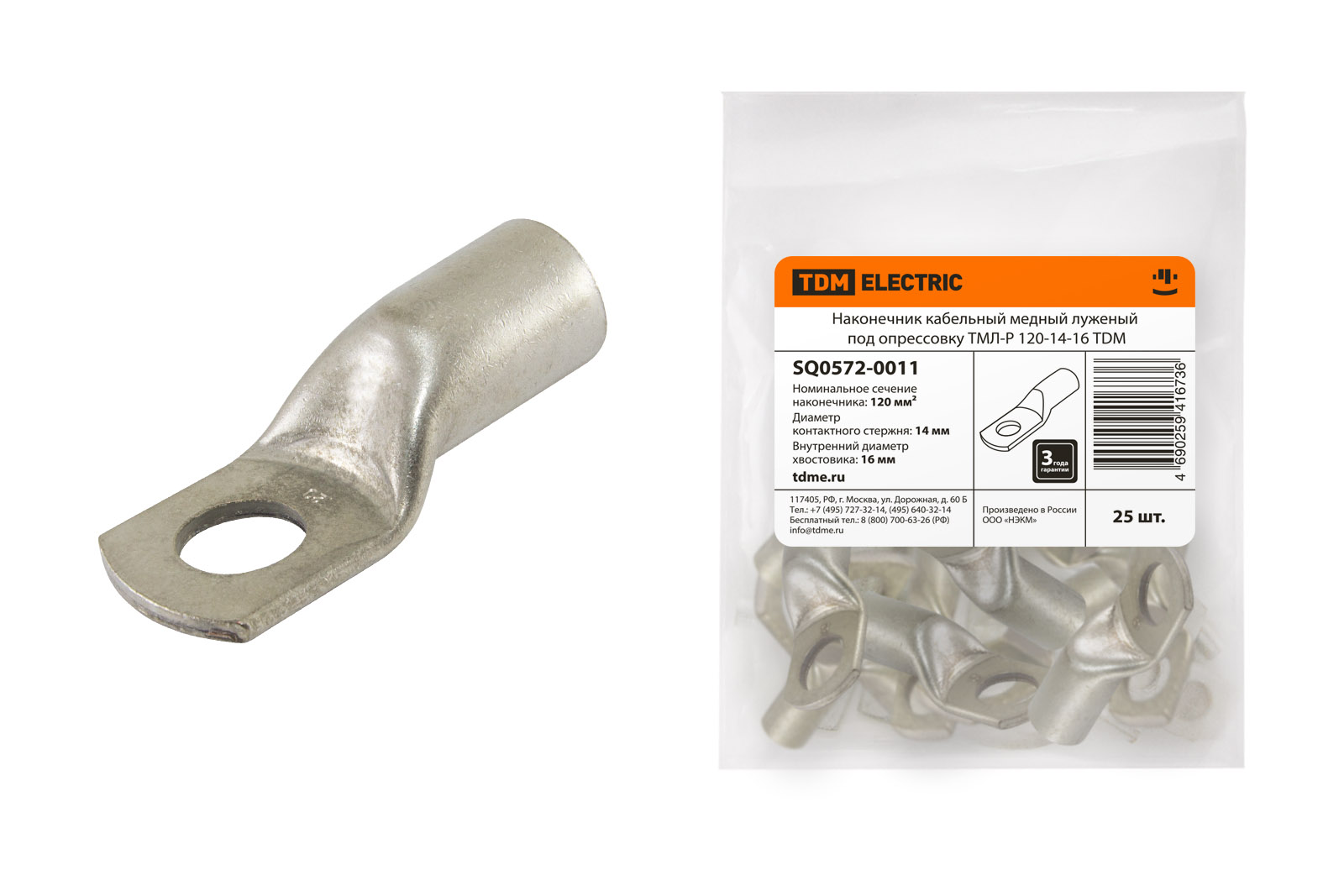 Наконечник кабельный медный луженый под опрессовку ТМЛ-Р 120-14-16 TDM в Орске