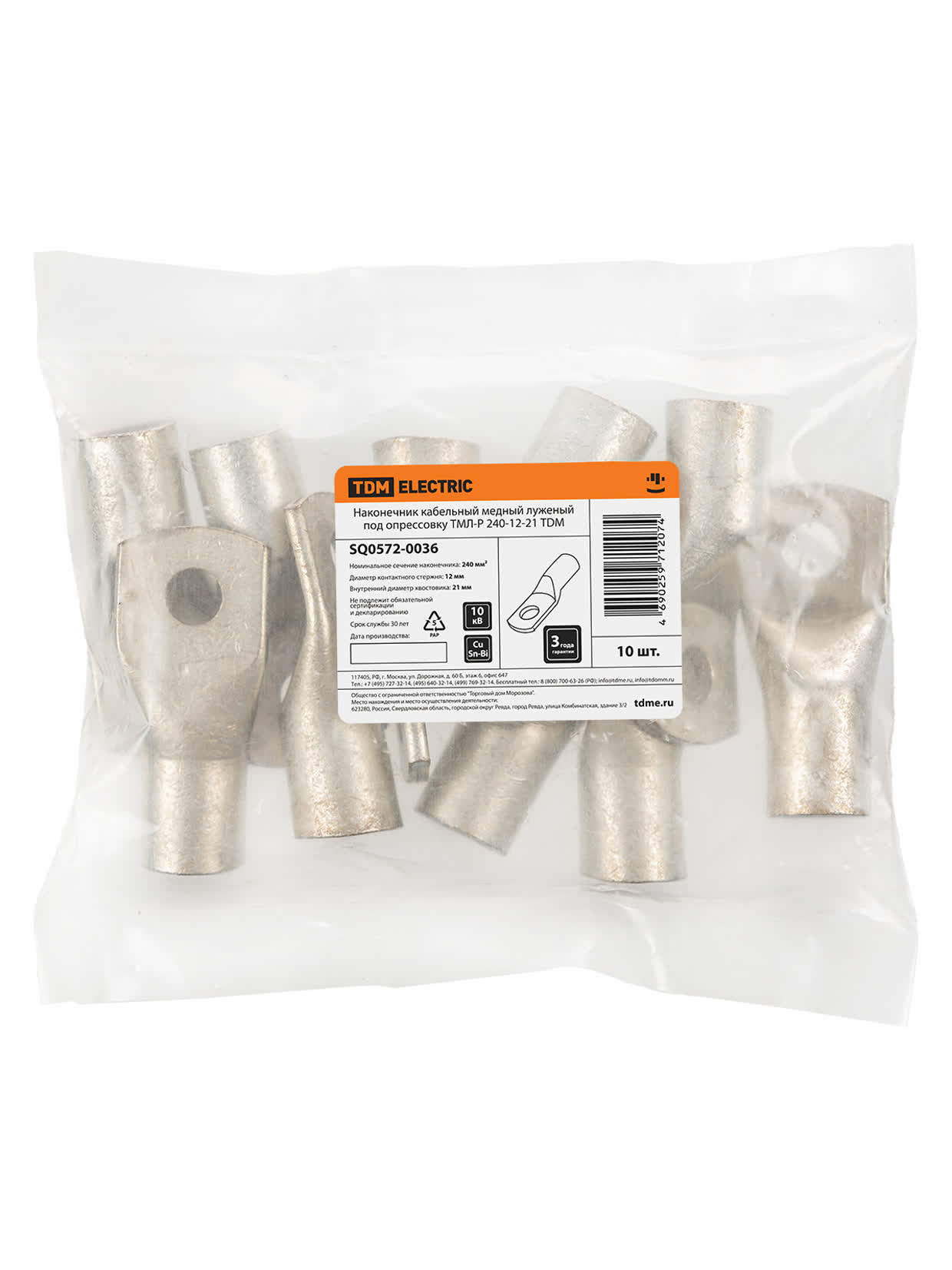 Наконечник кабельный медный луженый под опрессовку ТМЛ-Р 240-12-21 TDM доступен в интернет‑магазине ВольтМаркет в Орске. Покупая у нас, вы получаете дополнительные преимущества: