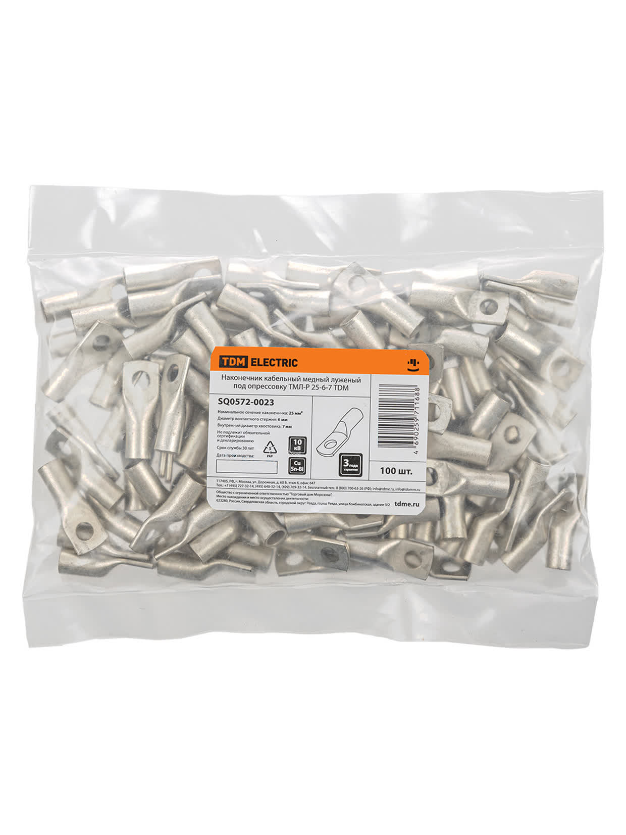Наконечник кабельный медный луженый под опрессовку ТМЛ-Р 25-6-7 TDM доступен в интернет‑магазине ВольтМаркет в Орске. Покупая у нас, вы получаете дополнительные преимущества: