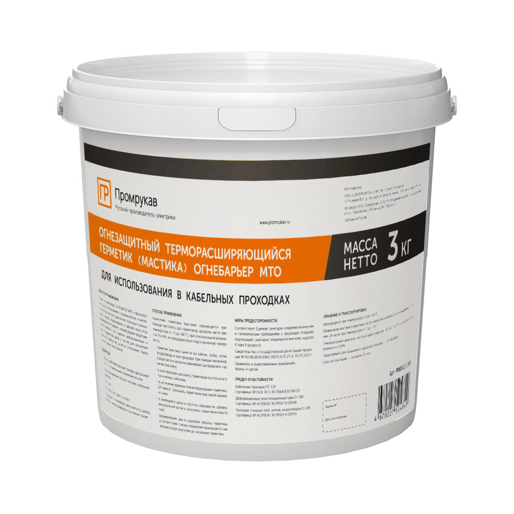 Герметик - мастика огнезащитный терморасширяющийся "Огнебарьер" МТО 3 кг Промрукав доступен в интернет‑магазине ВольтМаркет в Орске. Покупая у нас, вы получаете дополнительные преимущества: