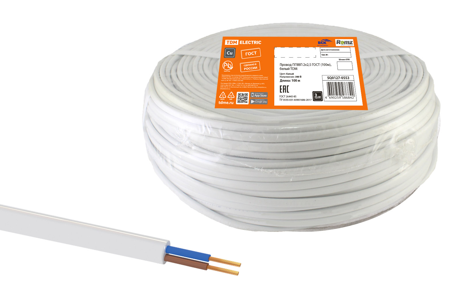 Провод ПГВВП 2х2,5 ГОСТ (100м), белый TDM доступен в интернет‑магазине ВольтМаркет в Орске. Покупая у нас, вы получаете дополнительные преимущества: