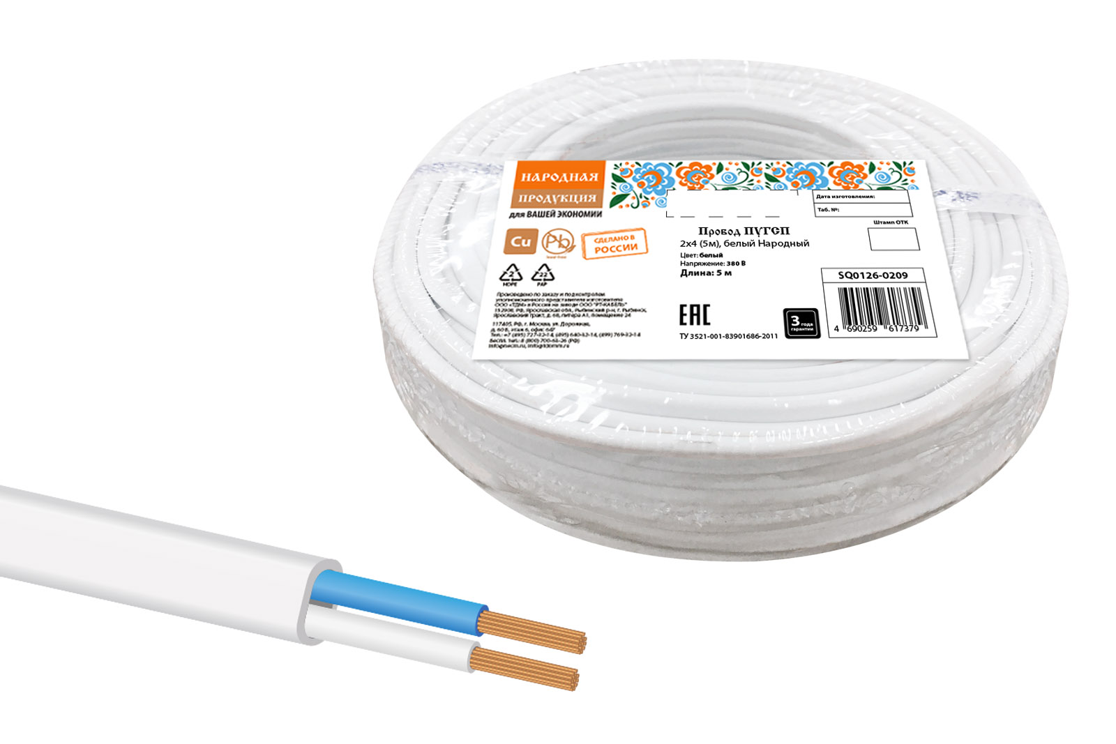 Провод ПУГСП 2х4 (5м), белый Народный в Орске