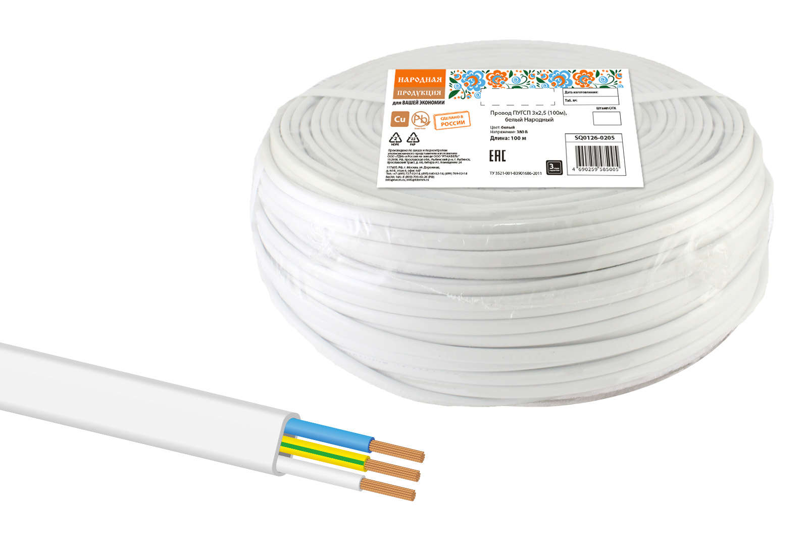 Провод ПУГСП 3х2,5 (100м), белый Народный в Орске