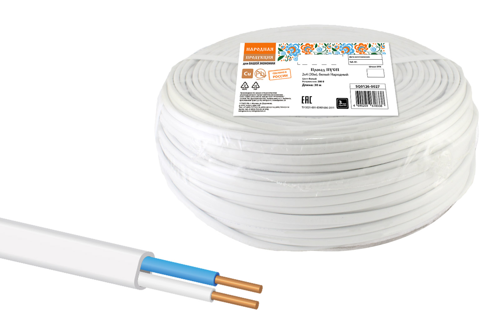 Провод ПУСП 2х4 (30м), белый Народный доступен в интернет‑магазине ВольтМаркет в Орске. Покупая у нас, вы получаете дополнительные преимущества: