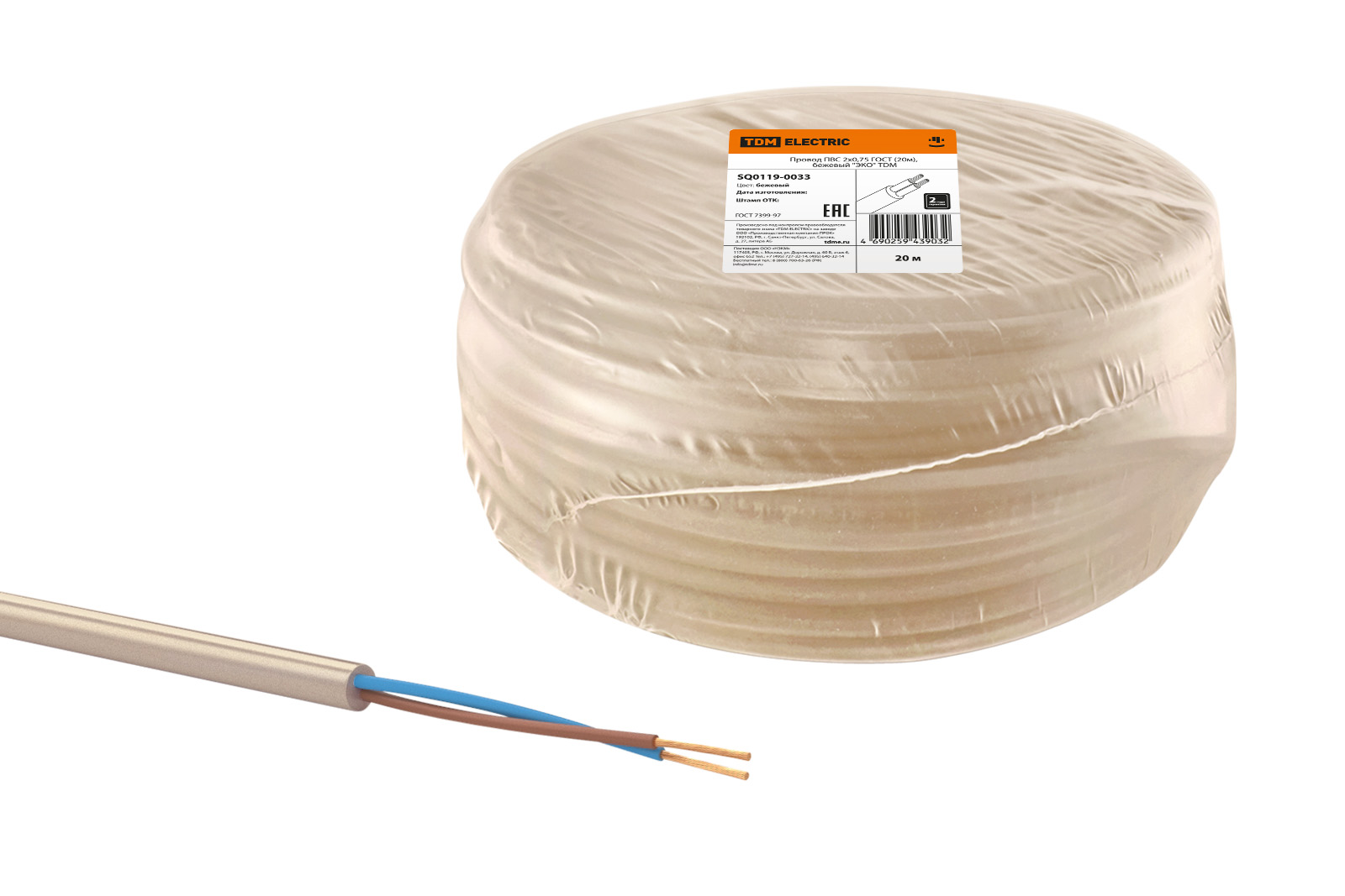 Провод ПВС 2х0,75 ГОСТ (20м), бежевый "ЭКО" TDM доступен в интернет‑магазине ВольтМаркет в Орске. Покупая у нас, вы получаете дополнительные преимущества: