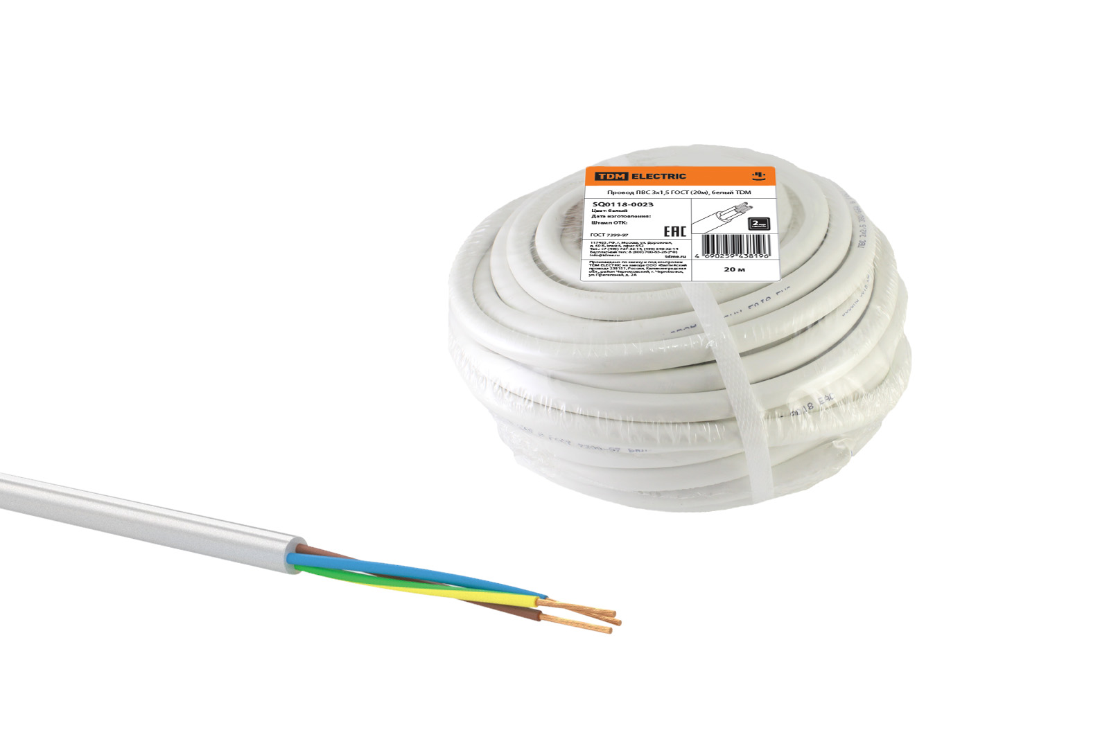 Провод ПВС 3х1,5 ГОСТ (20м), белый TDM в Орске