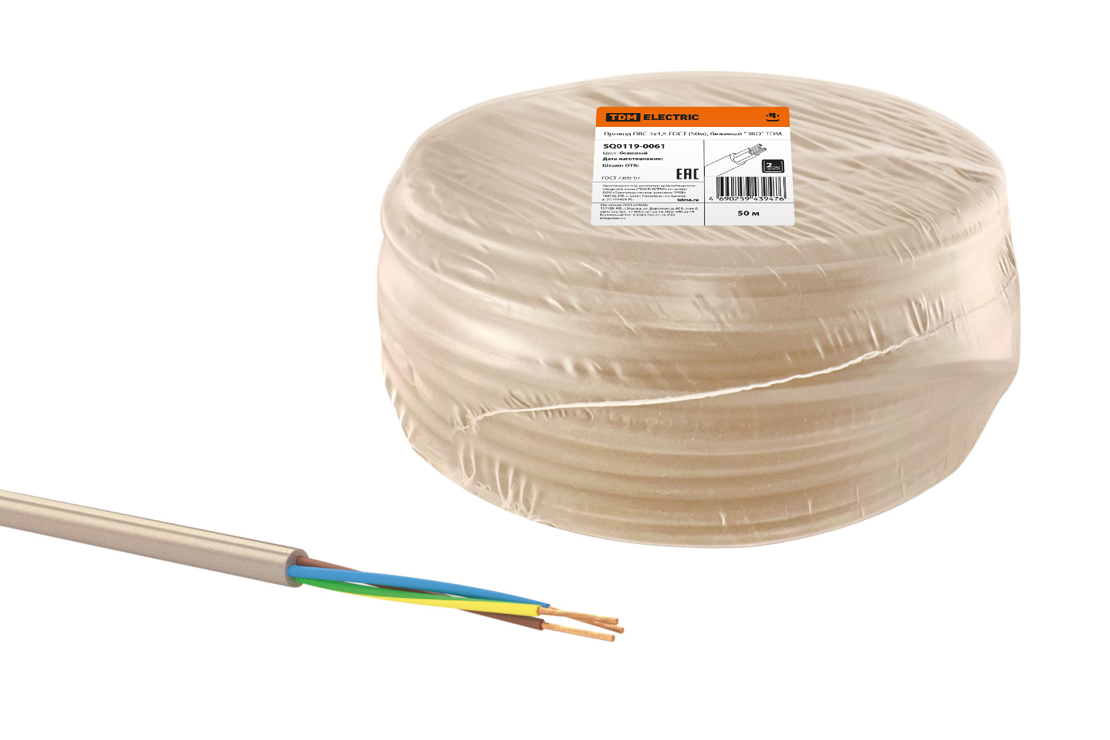 Провод ПВС 3х1,5 ГОСТ (50м), бежевый "ЭКО" TDM доступен в интернет‑магазине ВольтМаркет в Орске. Покупая у нас, вы получаете дополнительные преимущества: