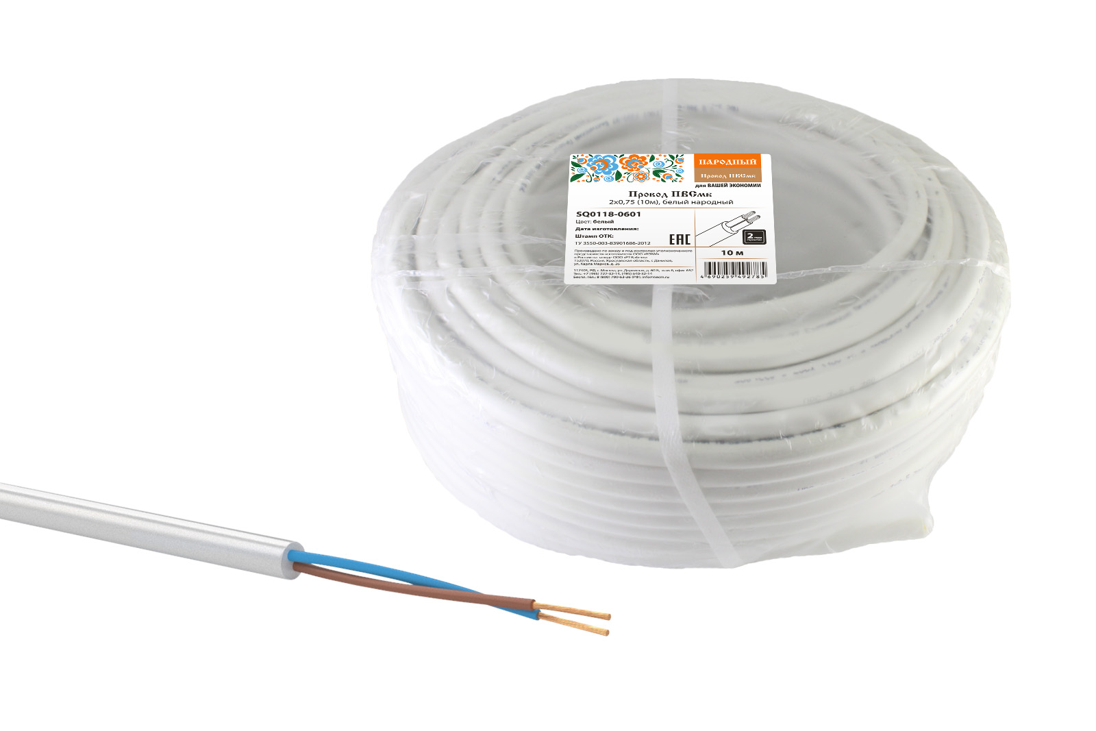 Провод ПВСмб 2х0,75 (10м), белый Народный в Орске