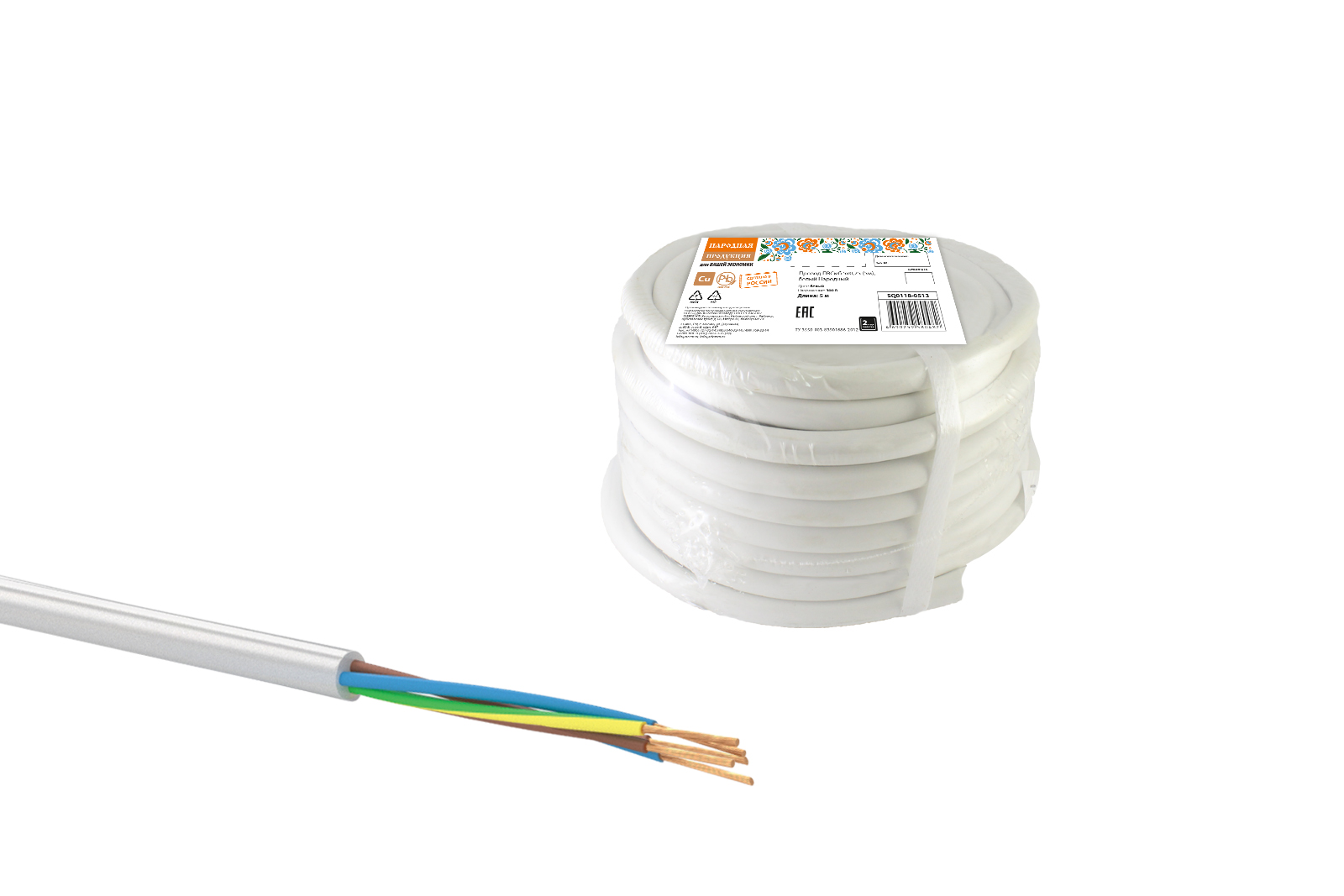Провод ПВСмб 5х0,75 (5м), белый Народный в Орске