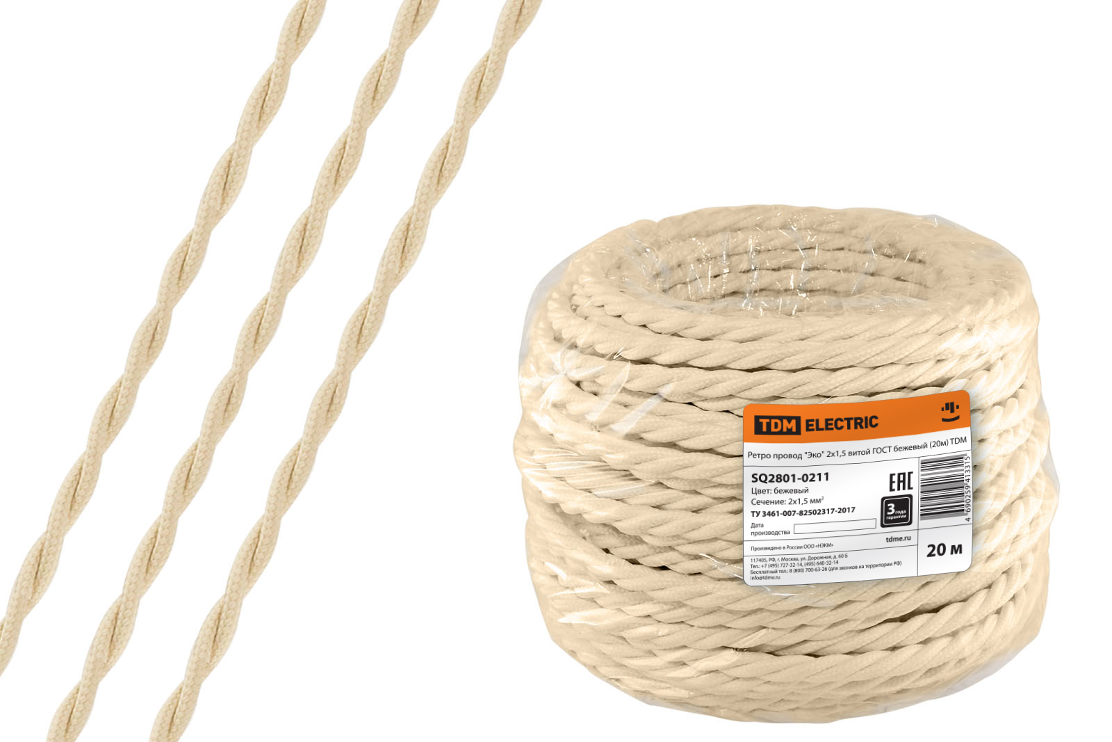 Ретро провод "Эко" 2х1,5 витой ГОСТ бежевый (20м) TDM доступен в интернет‑магазине ВольтМаркет в Орске. Покупая у нас, вы получаете дополнительные преимущества: