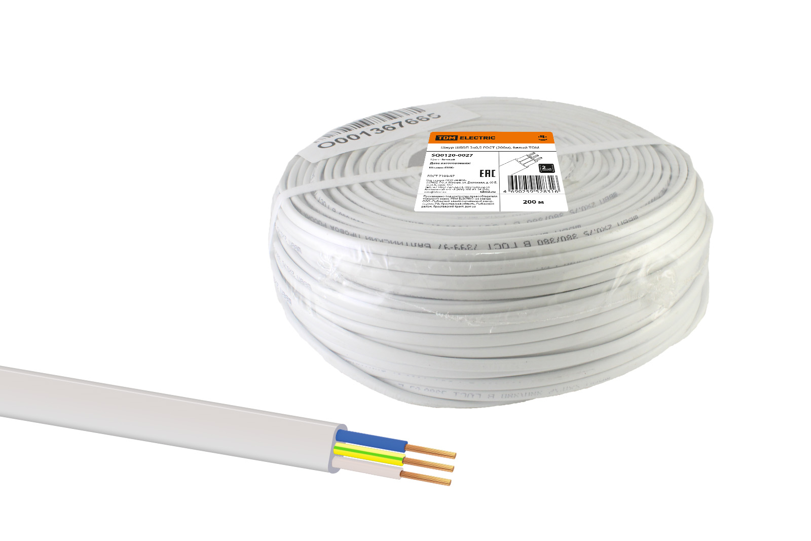 Шнур ШВВП 3х0,5 ГОСТ (200м), белый TDM доступен в интернет‑магазине ВольтМаркет в Орске. Покупая у нас, вы получаете дополнительные преимущества: