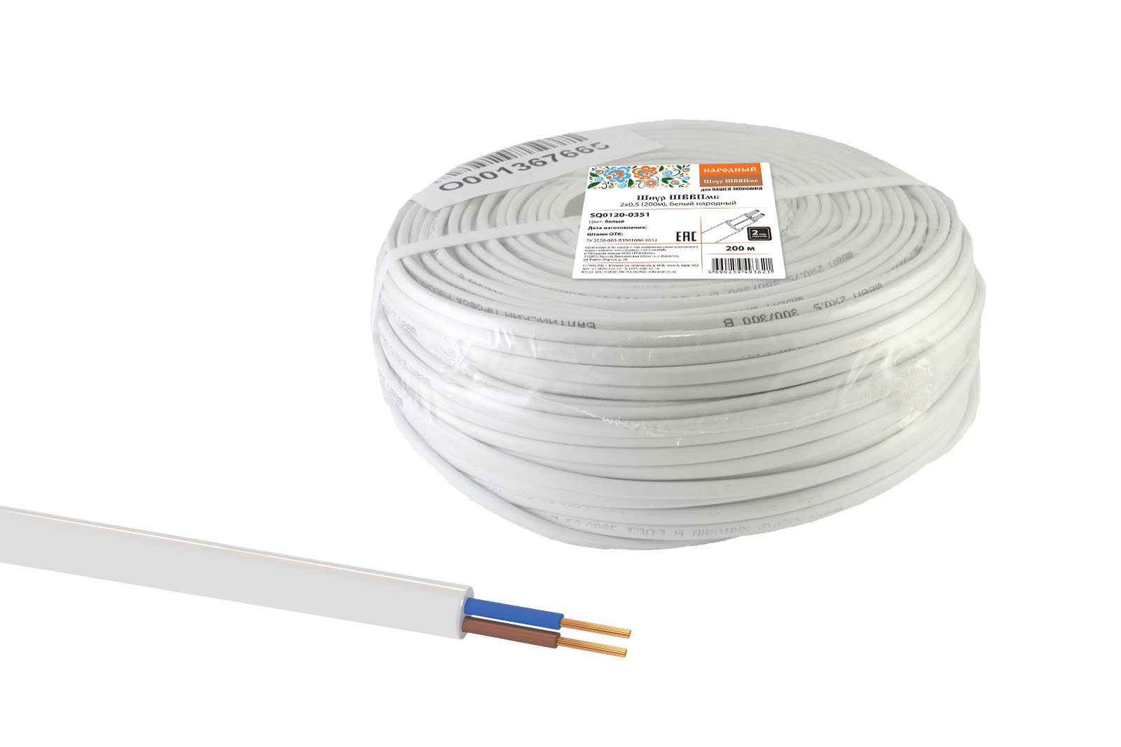 Шнур ШВВПмб 2х0,5 (200м), белый Народный в Орске