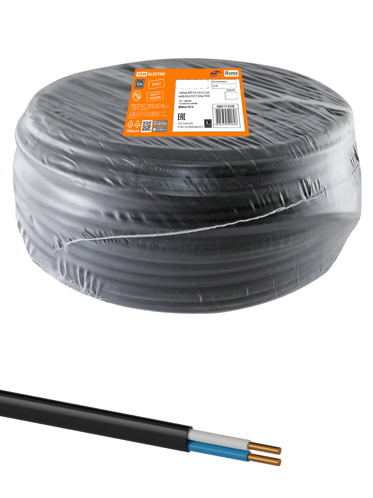 Кабель ВВГ-П нг(А)-LS 2х6 ок(N)-0,66 ГОСТ (50м) TDM доступен в интернет‑магазине ВольтМаркет в Орске. Покупая у нас, вы получаете дополнительные преимущества: