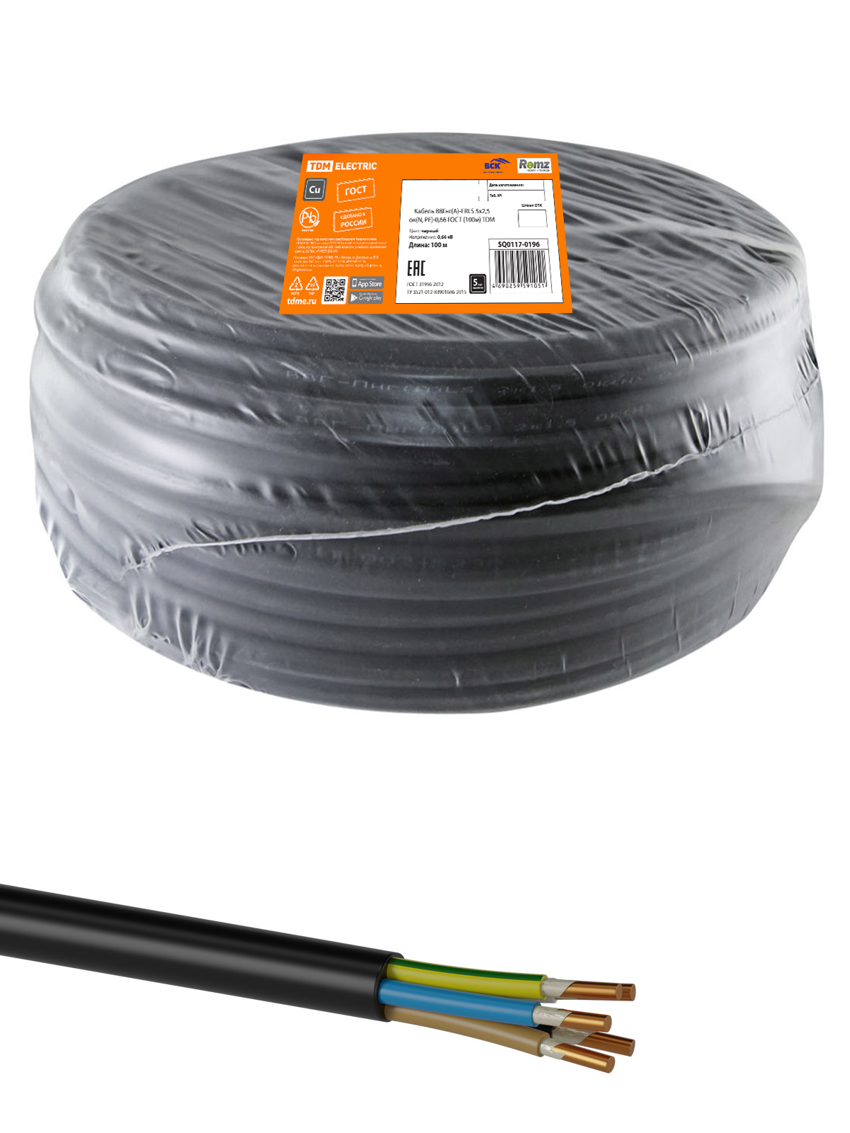 Кабель ВВГнг(А)-FRLS 5х2,5 ок(N, PE)-0,66 ГОСТ (100м) TDM доступен в интернет‑магазине ВольтМаркет в Орске. Покупая у нас, вы получаете дополнительные преимущества: