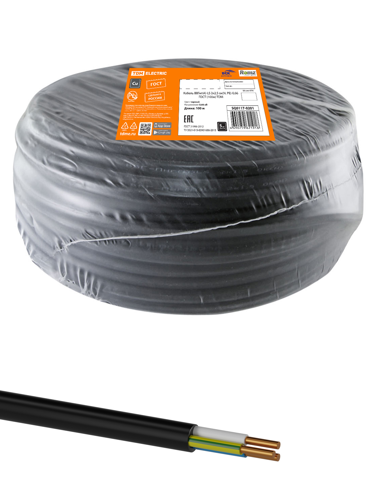 Кабель ВВГнг(А)-LS 3х2,5 ок(N, PE)-0,66 ГОСТ (100м) TDM доступен в интернет‑магазине ВольтМаркет в Орске. Покупая у нас, вы получаете дополнительные преимущества: