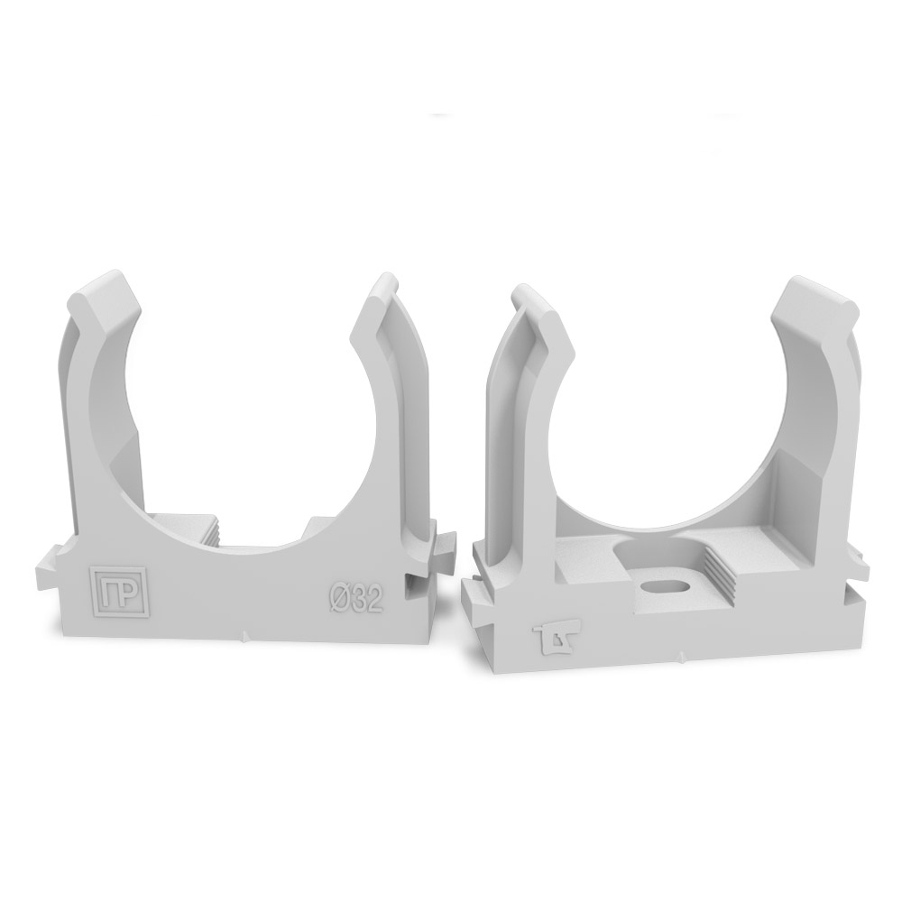 Крепеж-клипса для труб атмосферостойкая для прямого монтажа серая в п/э d32 мм (25шт/500шт уп/кор) Промрукав в Орске