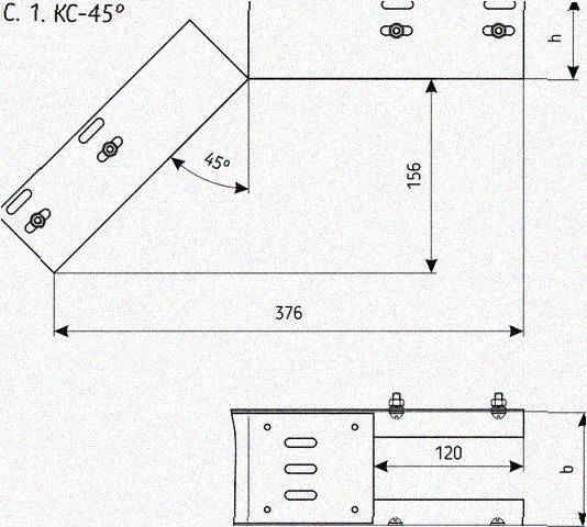 Лоток перфорированный КС 150х50-45 УХЛ1 для поворота трассы вниз на 45, оцинкованный лист S0,8 в Орске