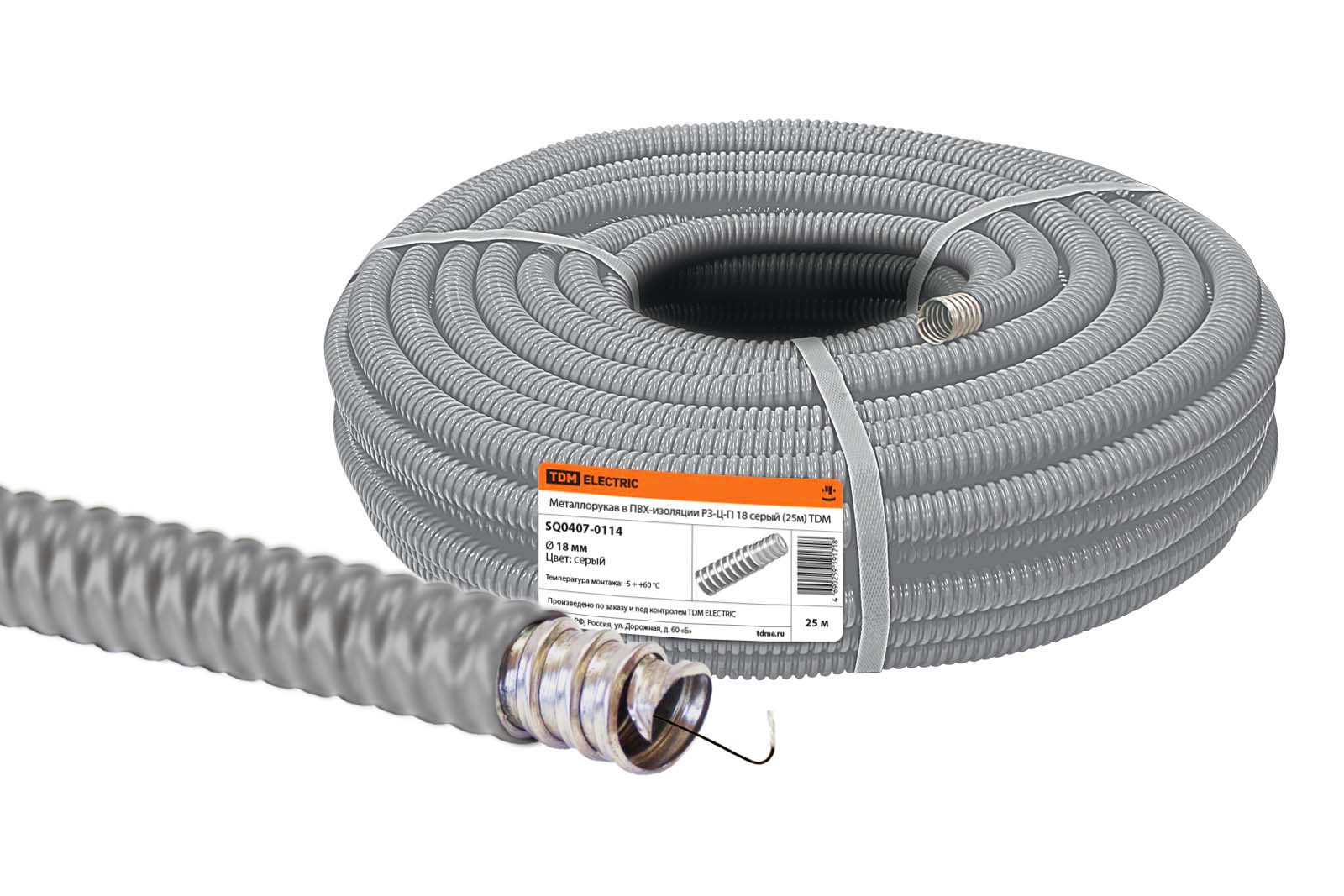 Металлорукав в ПВХ-изоляции РЗ-Ц-П 18 серый с протяжкой (25м) TDM доступен в интернет‑магазине ВольтМаркет в Орске. Покупая у нас, вы получаете дополнительные преимущества: