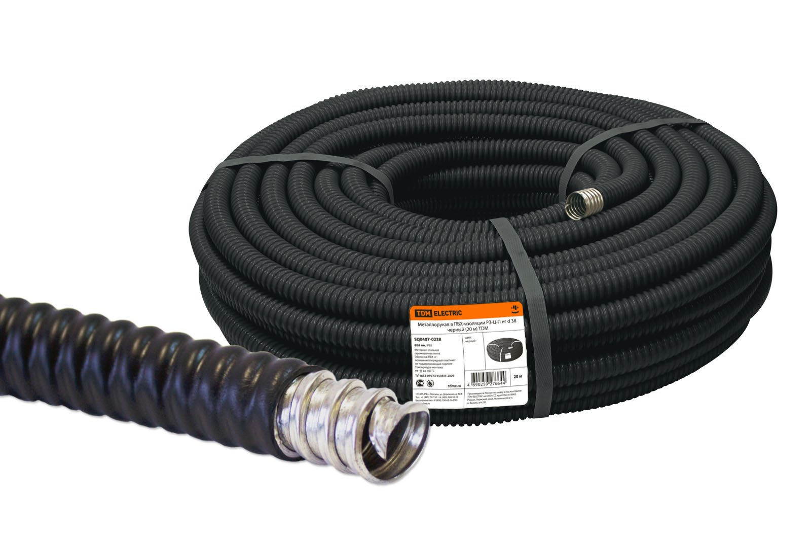 Металлорукав в ПВХ-изоляции РЗ-Ц-П d 38 черный без протяжки (20м) TDM в Орске