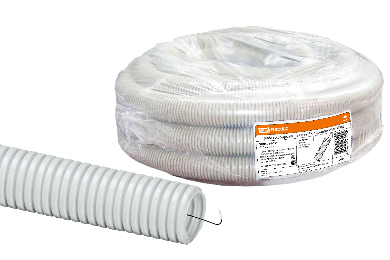 Труба гофрированная ПВХ d 16 с зондом (50 м) легкая TDM в Орске