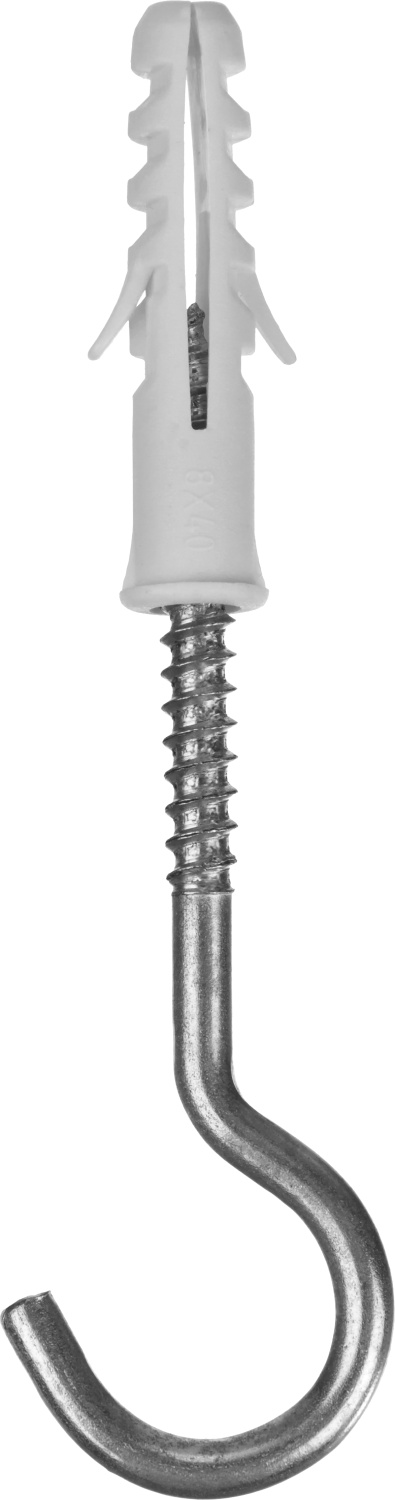 Дюбель распорный полипропиленовый, тип "ЕВРО", в комплекте с шурупом-полукольцом, 8 х 40 / 5 х 75 мм, 6 шт, ЗУБР в Орске