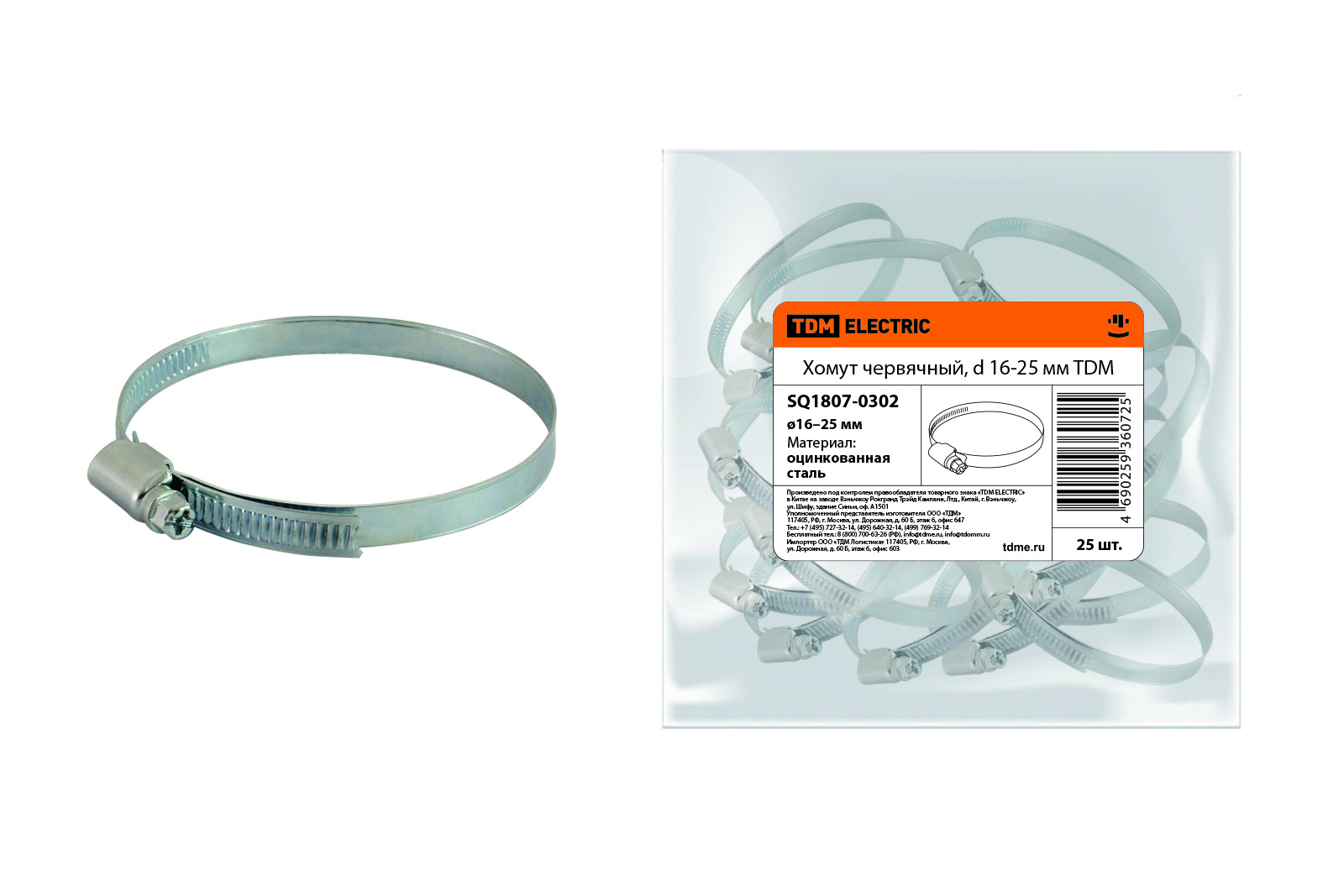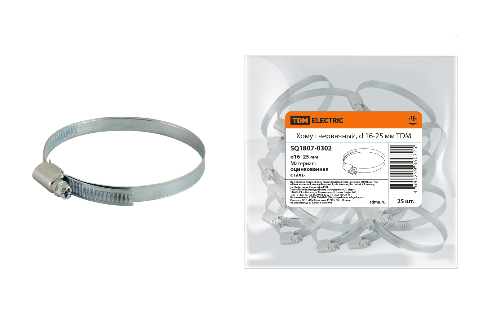 Хомут червячный, d 16-25 мм TDM в Орске