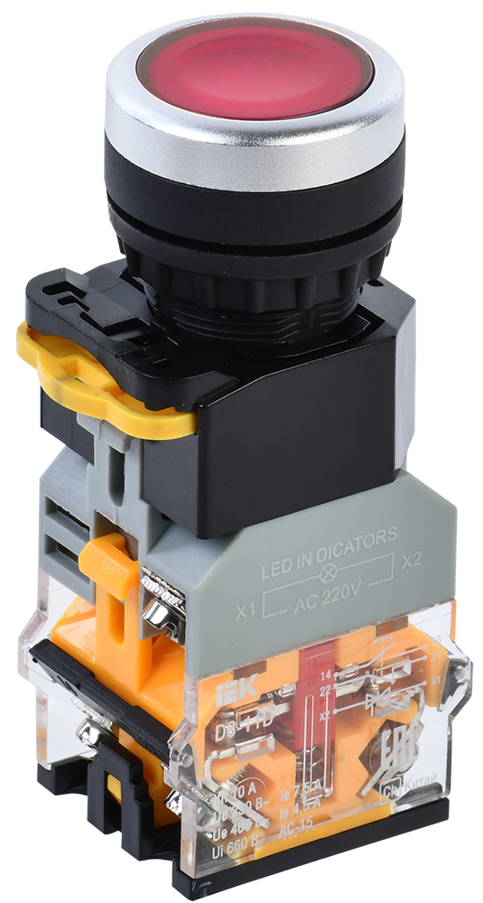 Кнопка управления D8-11D d=22мм 1з+1р с подсветкой красная IEK в Орске