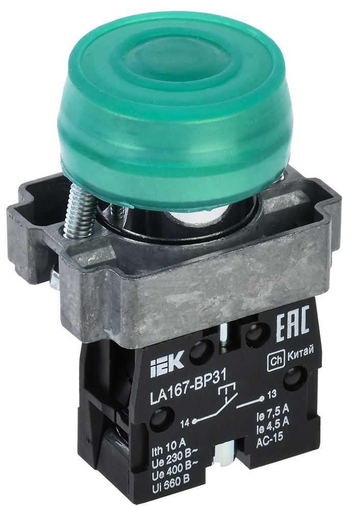 Кнопка управления LA167-BP31 d=22мм 1з зеленая IEK в Орске