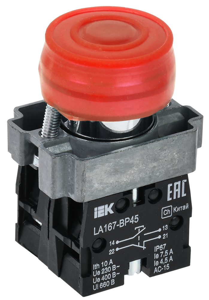 Кнопка управления LA167-BP45 d=22мм 1з+1р красная IEK в Орске