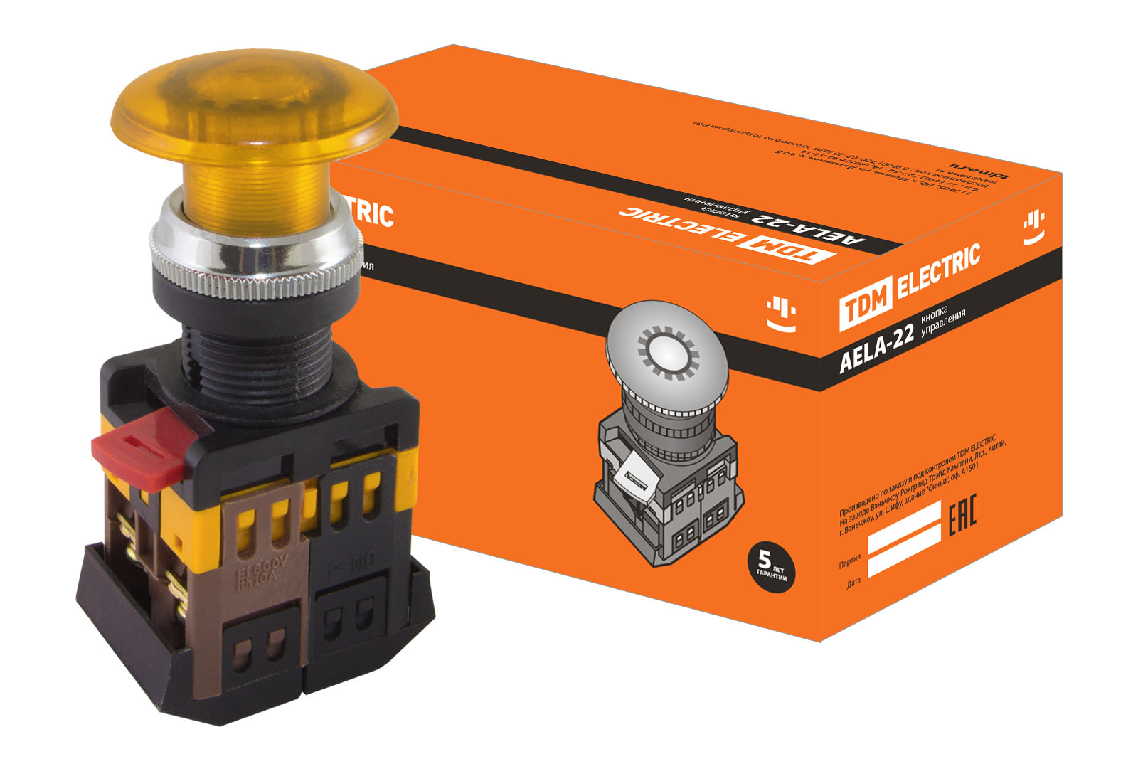 Кнопка AELA-22 "Грибок" желтый d22мм неон/230В 1з+1р TDM доступен в интернет‑магазине ВольтМаркет в Орске. Покупая у нас, вы получаете дополнительные преимущества: